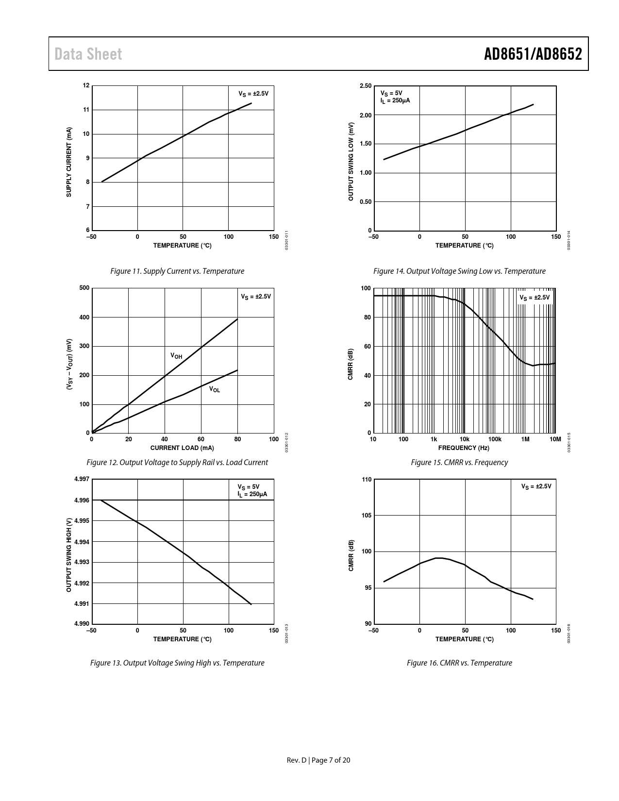 20 /7 — Data Sheet. AD8651/AD8652. 2.50. VS = ±2.5V. VS = 5V IL = 250µA. 2.00. …