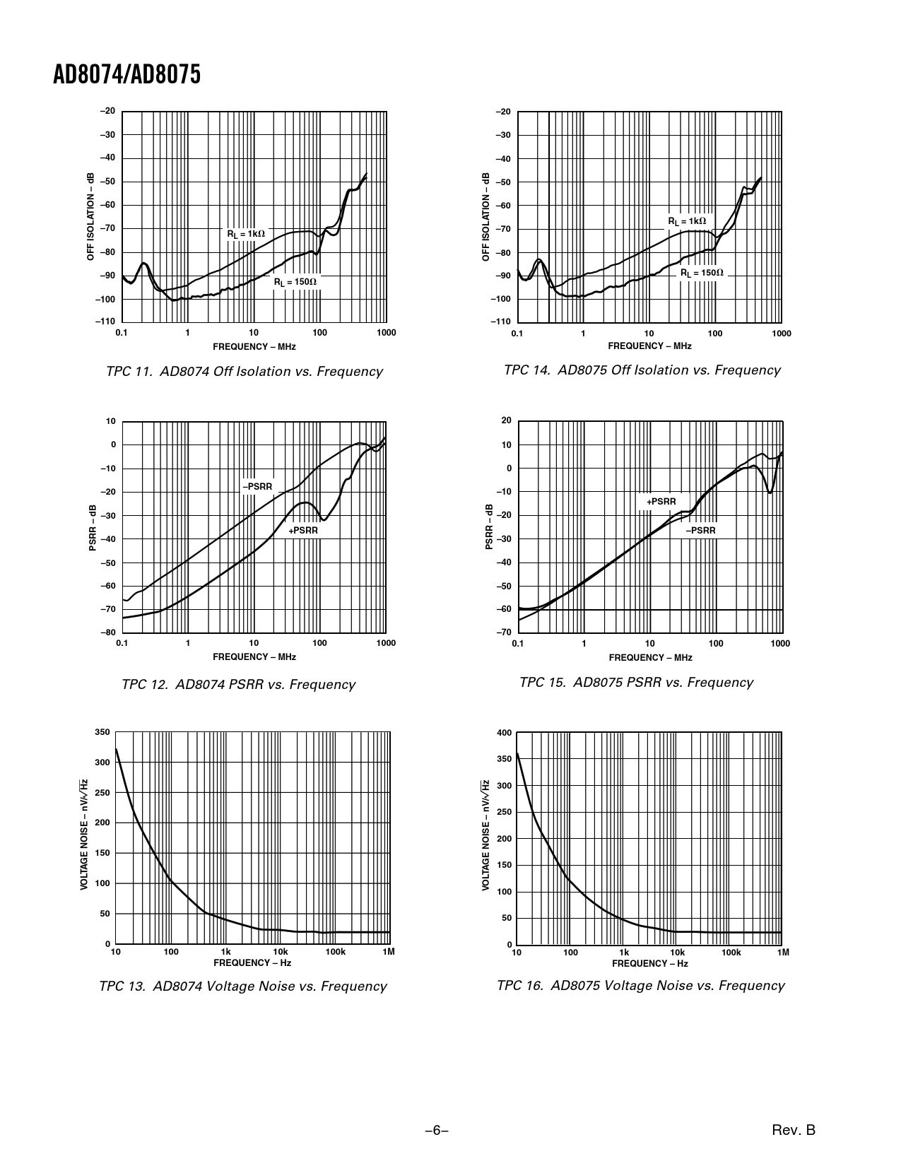 TPC 11. AD8074 Off Isolation vs. Frequency TPC 14. AD8075 Off Isolation vs. Frequency