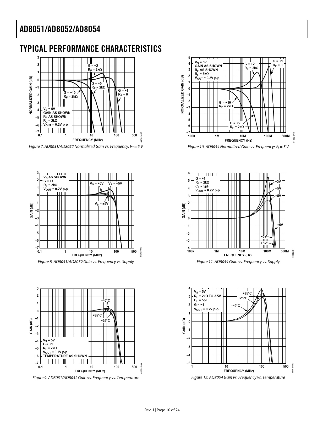 | Pages / Page | 24 / 10 — AD8051/AD8052/AD8054. TYPICAL PERFORMANCE CHARACTERISTICS. G = +1. S = … |