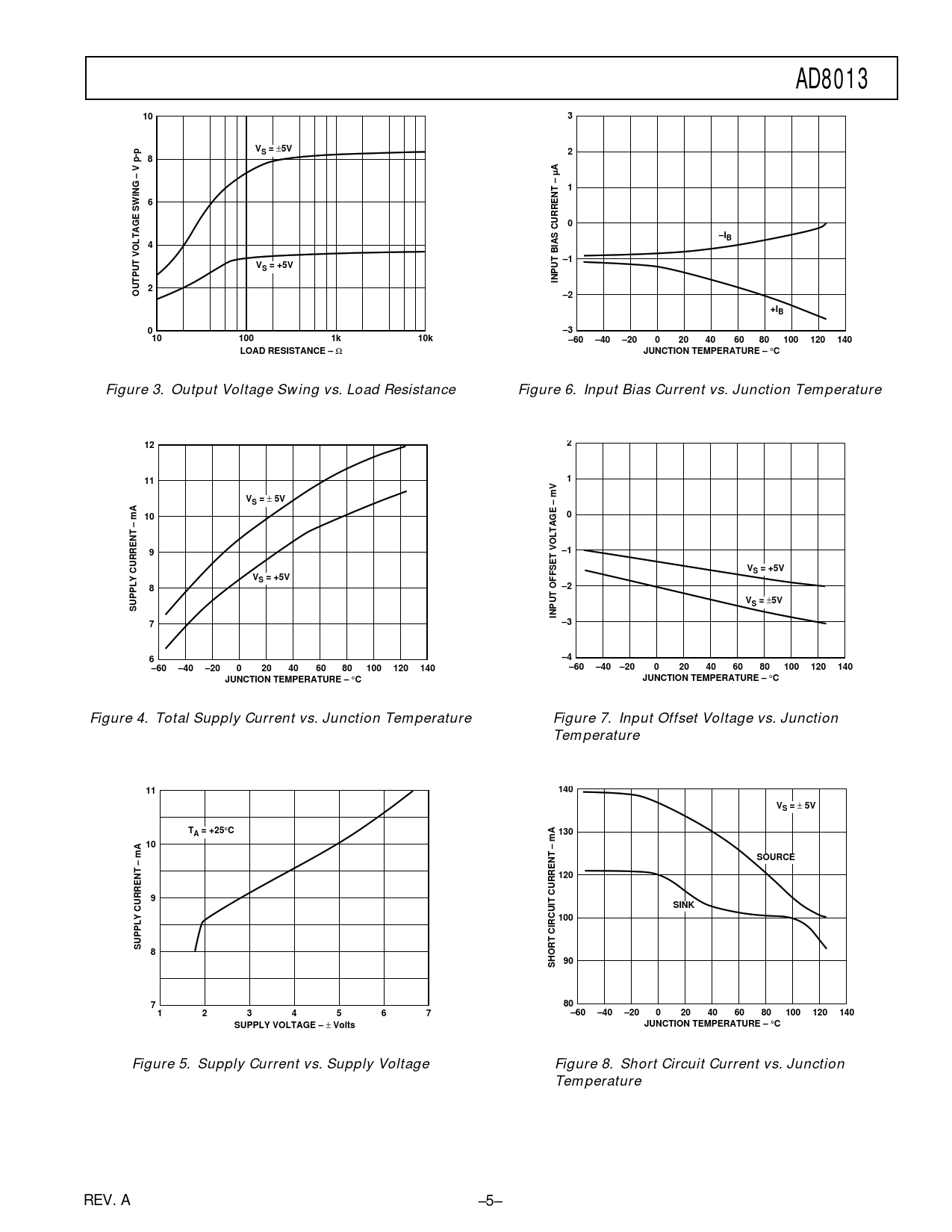 Figure 5. Supply Current vs. Supply Voltage Figure 8. Short Circuit Current vs. Junction Temperature REV. A –5–