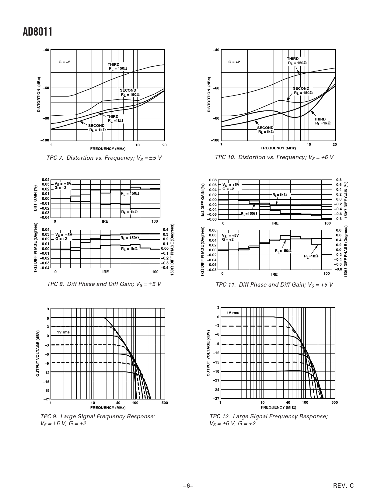 TPC 8. Diff Phase and Diff Gain; VS = ±5 V TPC 11. Diff Phase and Diff Gain; VS = +5 V