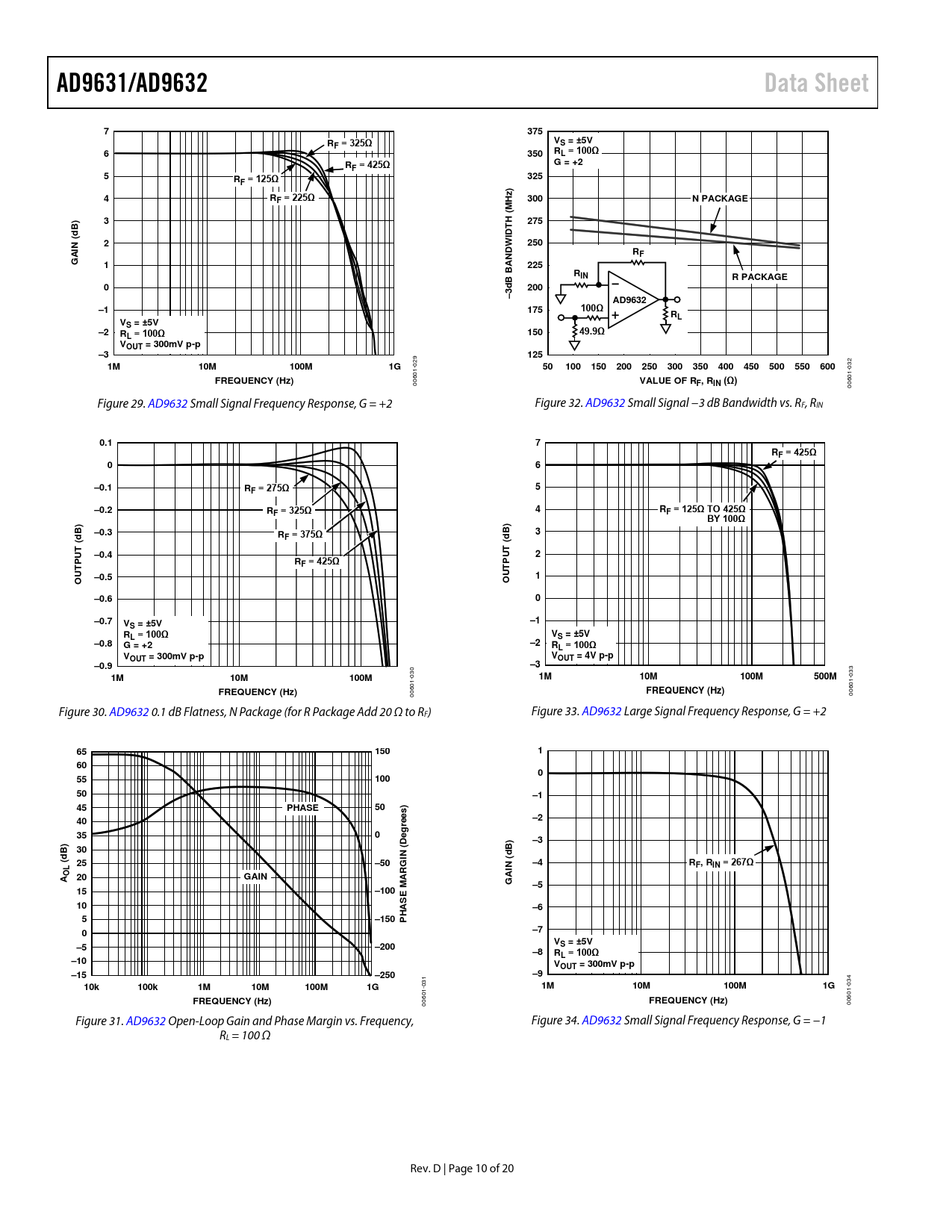 20 /10 — AD9631/AD9632. Data Sheet. 375. F = 325Ω. S = ±5V. 350. RL = 100Ω. G = …