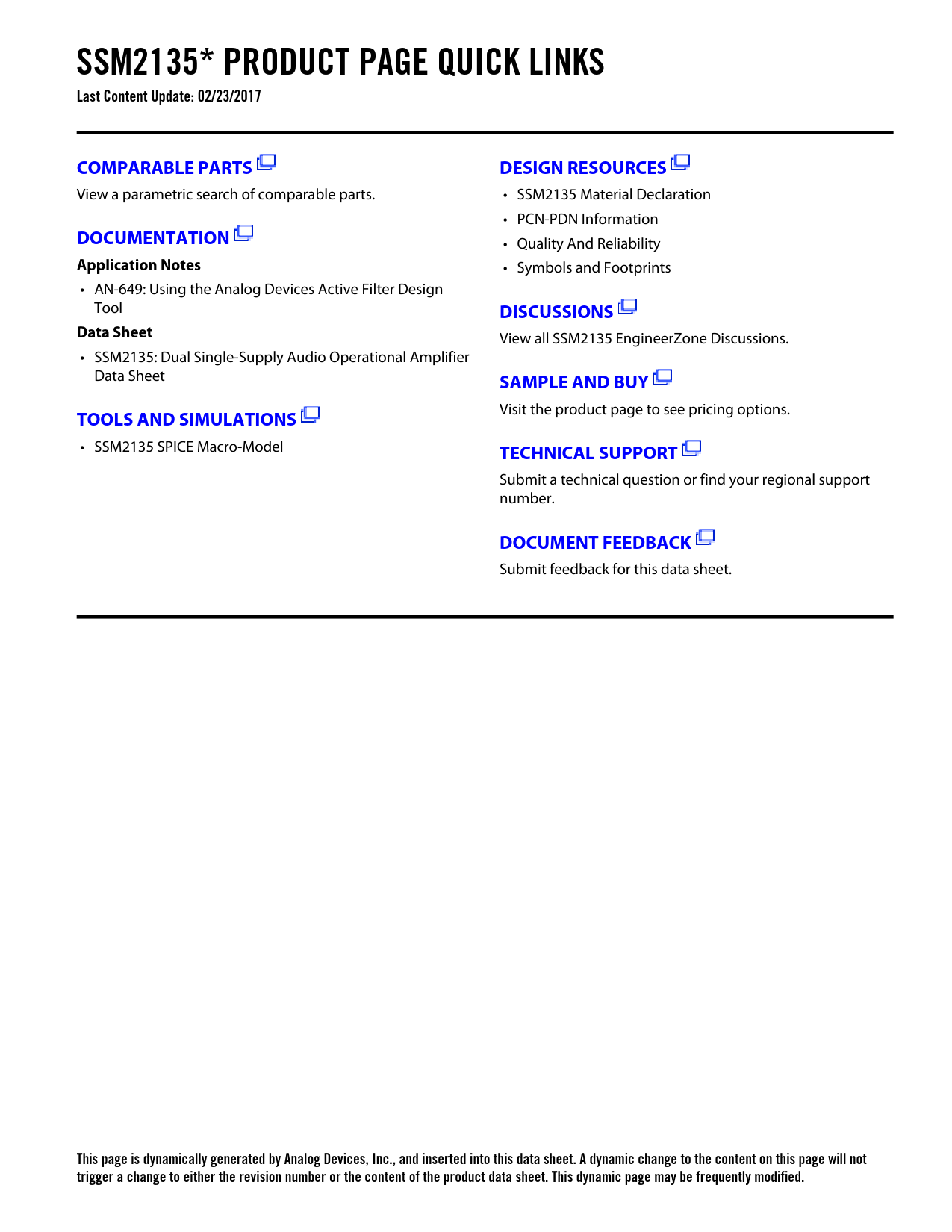 SSM2135* PRODUCT PAGE QUICK LINKS Last Content Update: 02/23/2017 COMPARABLE PARTS DESIGN RESOURCES