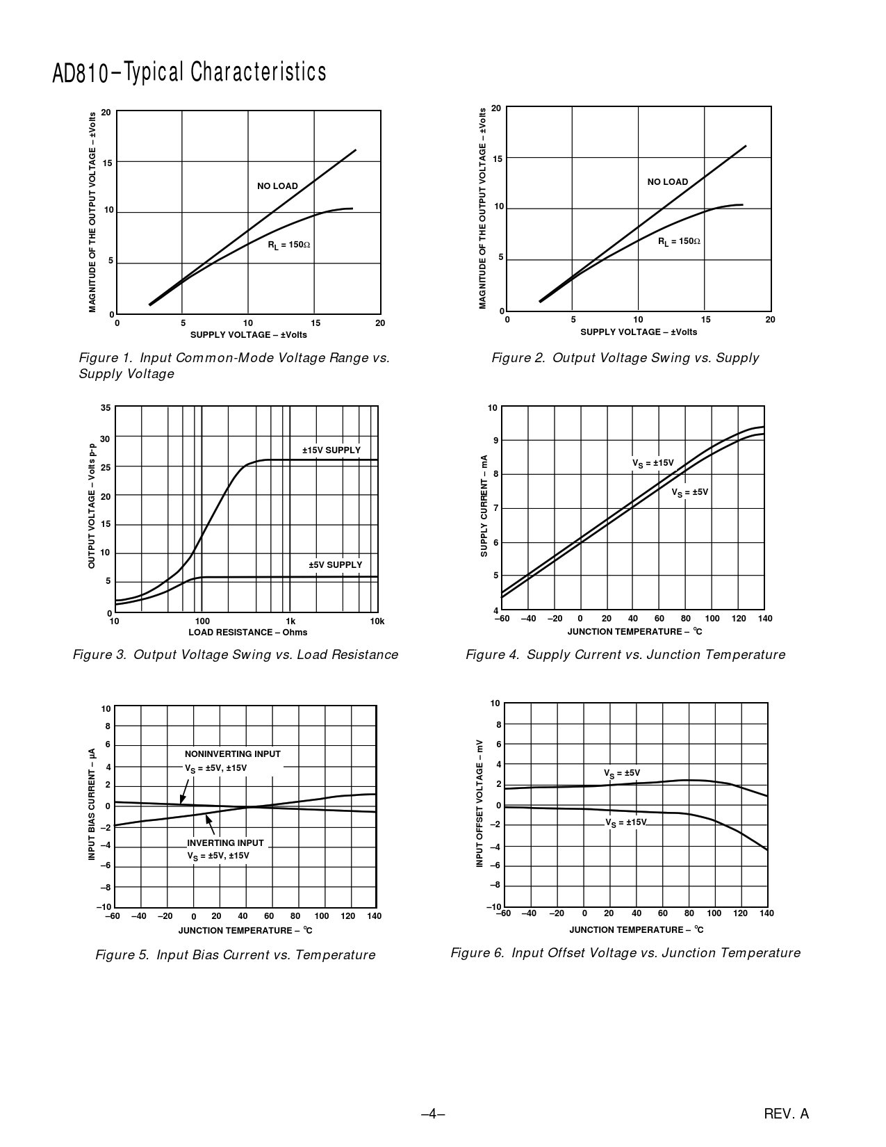 AD810–Typical Characteristics NO LOAD RL = 150 L = 150 MAGNITUDE OF THE OUTPUT VOLTAGE – ±Volts SUPPLY VOLTAGE – ±Volts
