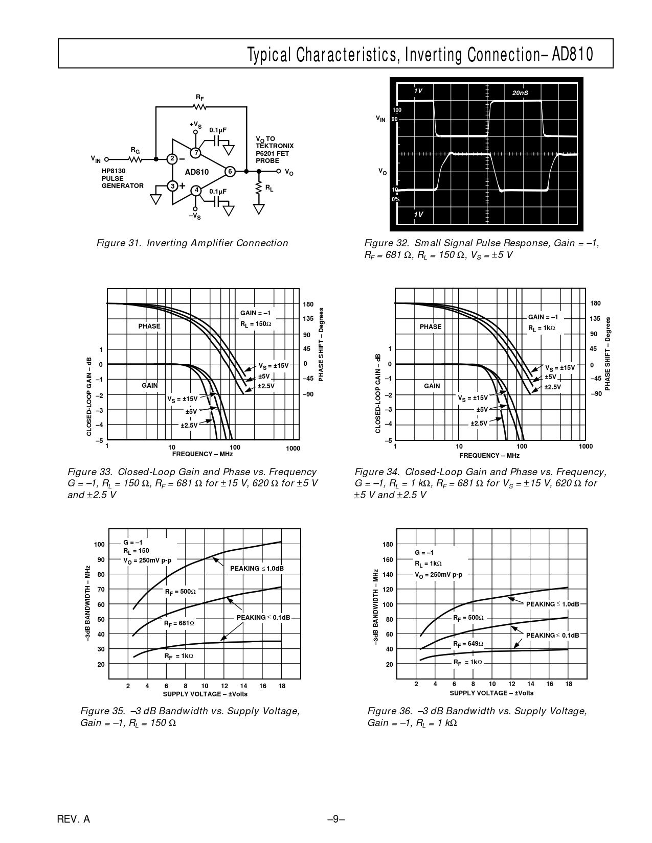 Typical Characteristics, Inverting Connection–AD810. 20nS. 100. +VS 0.1µF. VO TO. TEKTRONIX. P6201 FET. PROBE. HP8130. AD810