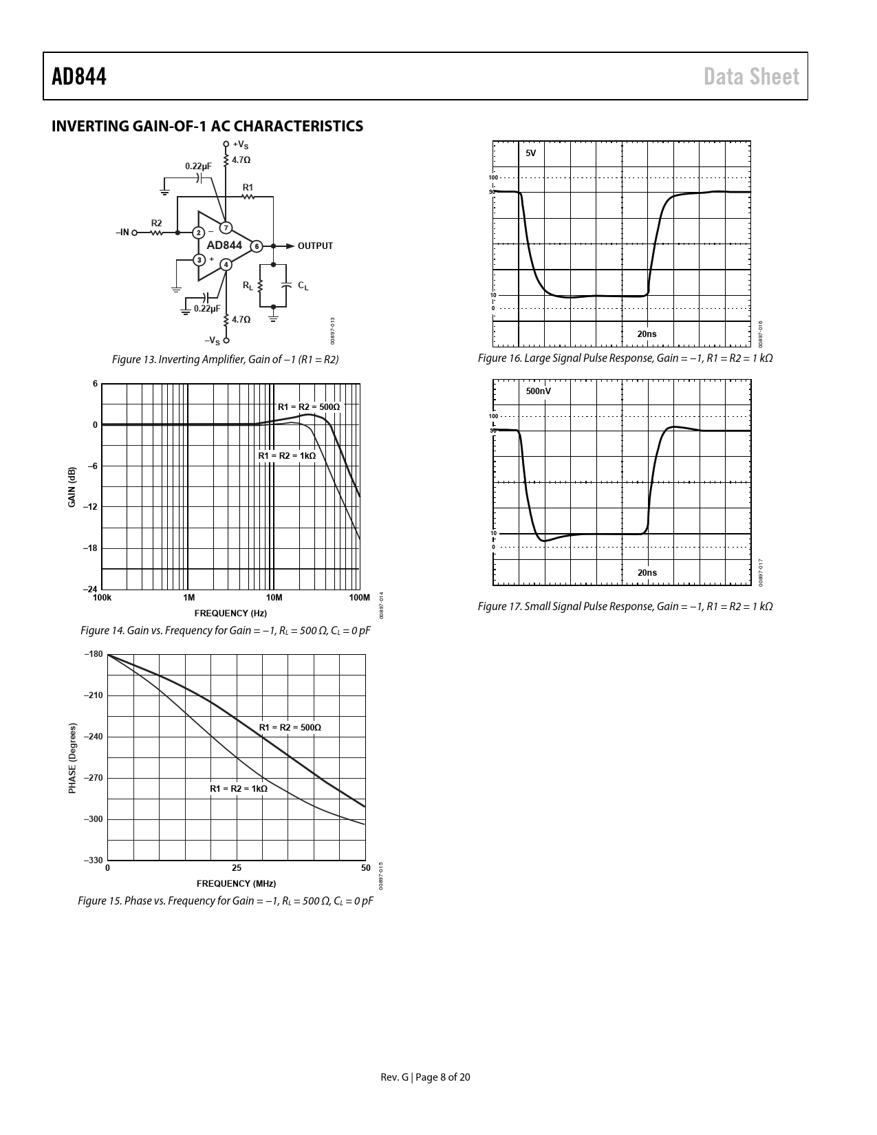 Pages / Page20 / 8 — AD844. Data Sheet. INVERTING GAIN-OF-1 AC CHARACTERISTICS. +VS. 4.7Ω. …