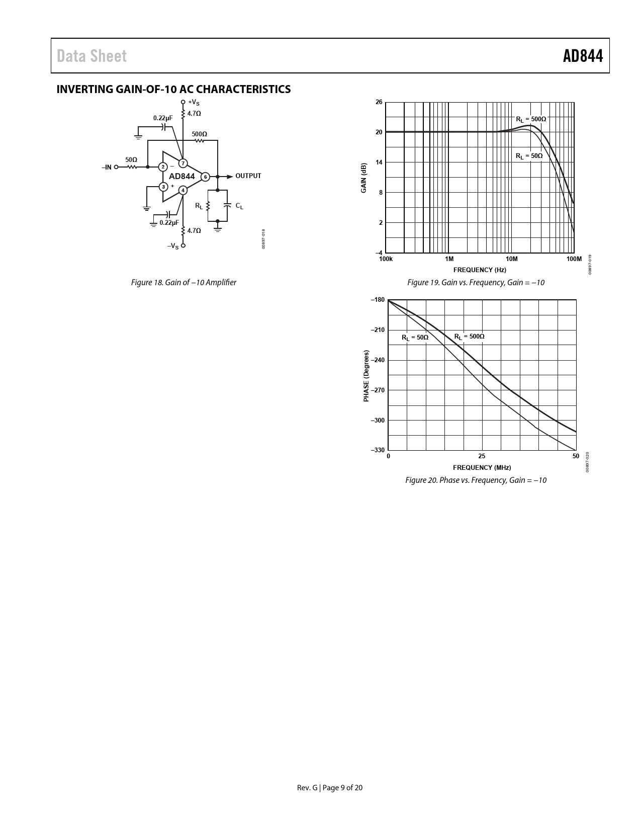 Pages / Page20 / 9 — Data Sheet. AD844. INVERTING GAIN-OF-10 AC CHARACTERISTICS. +VS. 4.7Ω. …