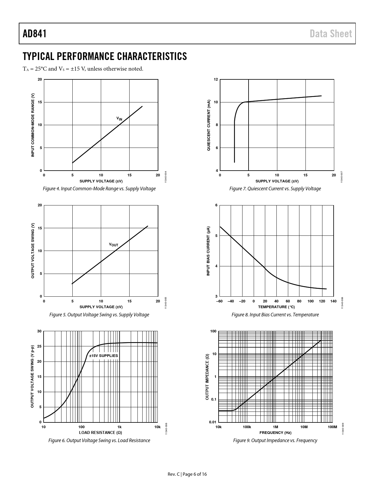 AD841. Data Sheet. TYPICAL PERFORMANCE CHARACTERISTICS. E (V). mA). ( NT. E R D. VIN. -MO. CURRE NT. MMO. PU IN. SUPPLY VOLTAGE (±V). ) V. G (. µ (