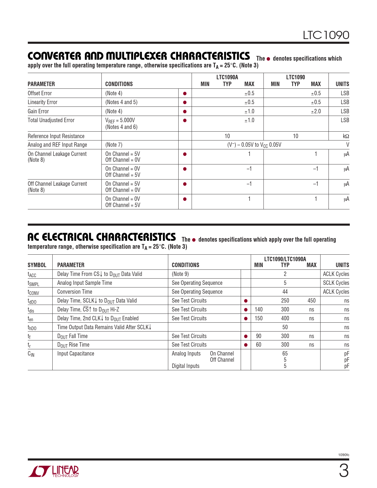 C. (Note 3) LTC1090A LTC1090 PARAMETER CONDITIONS MIN TYP MAX MIN TYP MAX UNITS