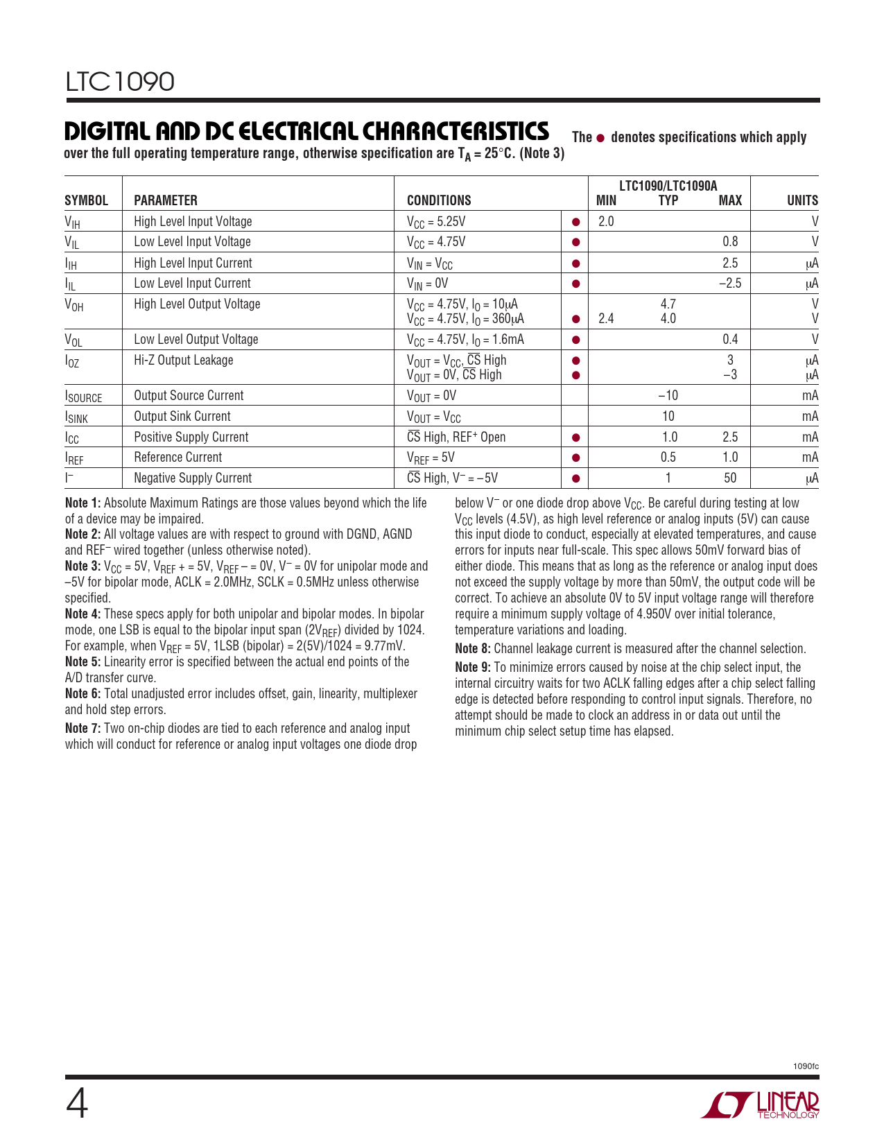C. (Note 3) LTC1090/LTC1090A SYMBOL PARAMETER CONDITIONS MIN TYP MAX UNITS