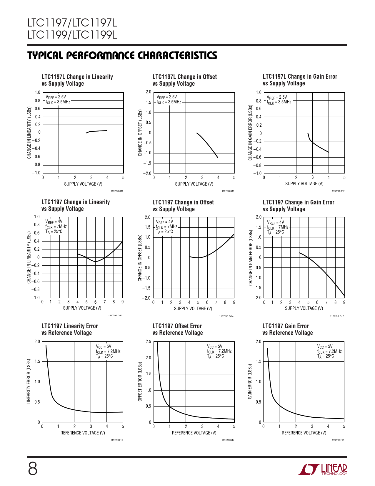 | Pages / Page | 28 / 8 — TYPICAL PERFOR A CE CHARACTERISTICS. LTC1197L Change in Linearity. … |
