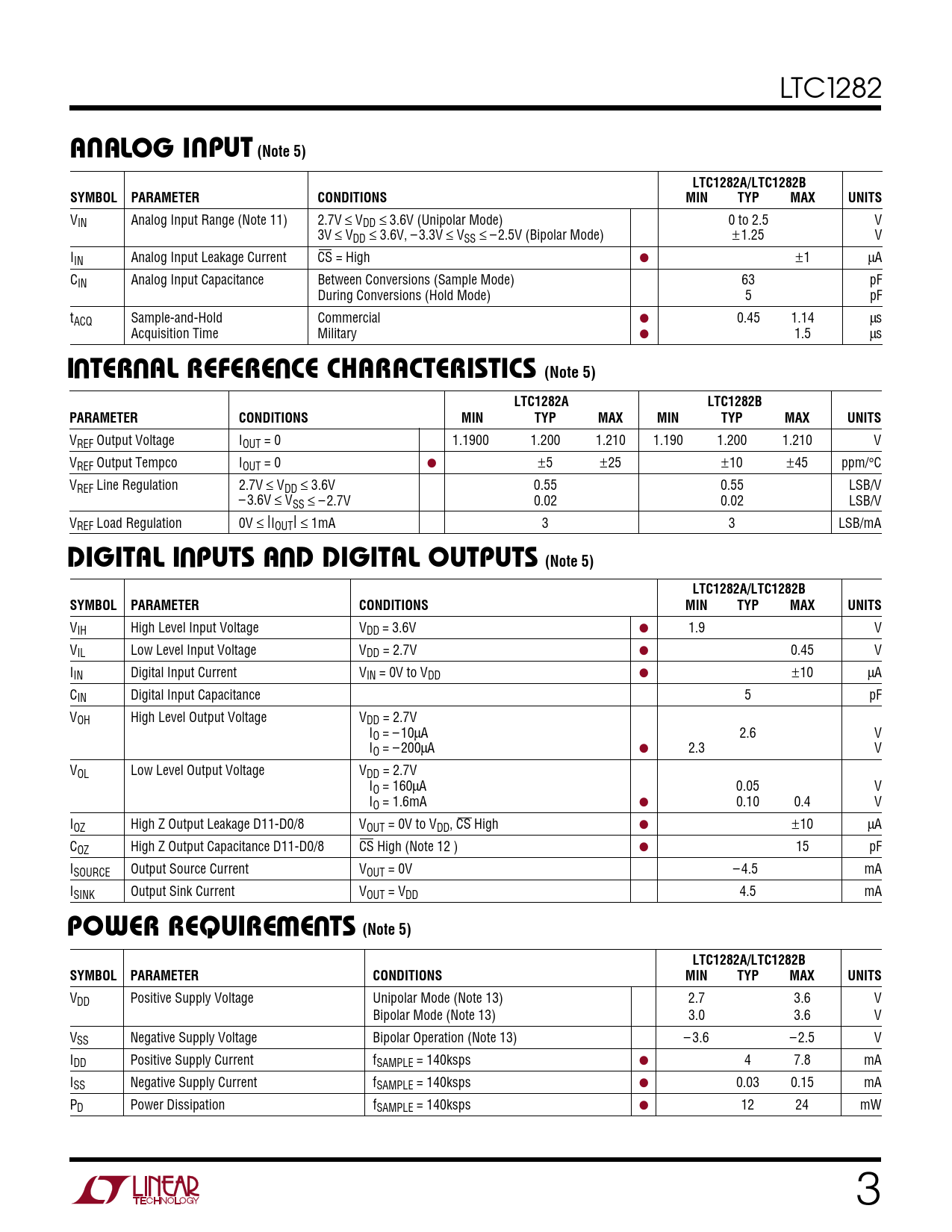 | Pages / Page | 24 / 3 — A ALOG I PUT (Note 5). LTC1282A/LTC1282B. SYMBOL. PARAMETER. CONDITIONS. … |
