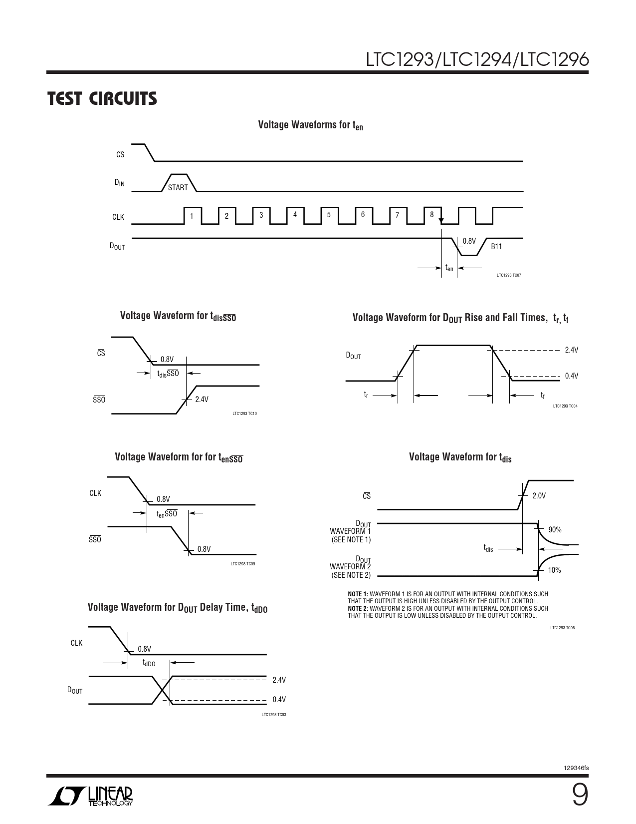 CLK CS 2.0V 0.8V tenSSO DOUT WAVEFORM 1 90% SSO (SEE NOTE 1) 0.8V tdis DOUT LTC1293 TC09 WAVEFORM 2 10% (SEE NOTE 2)