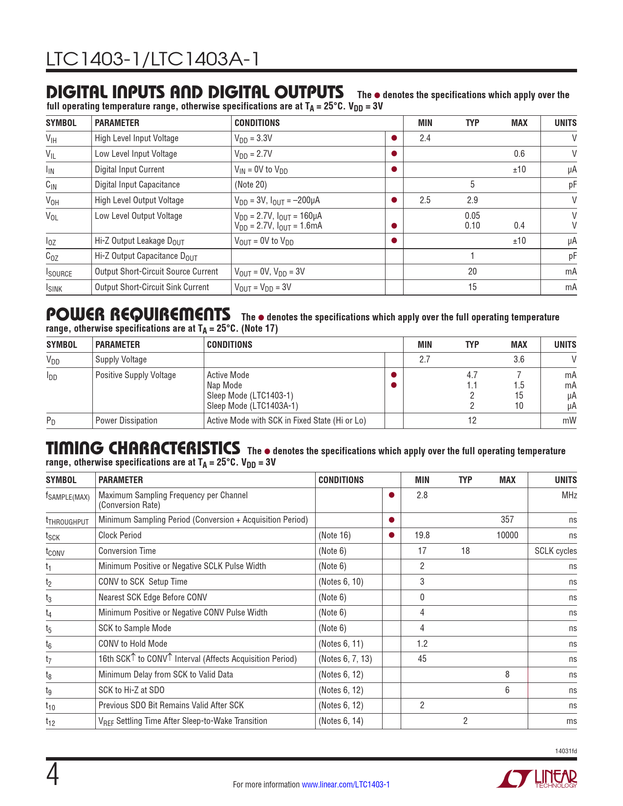 Datasheet LTC1403-1, LTC1403A-1 (Analog Devices) - 4