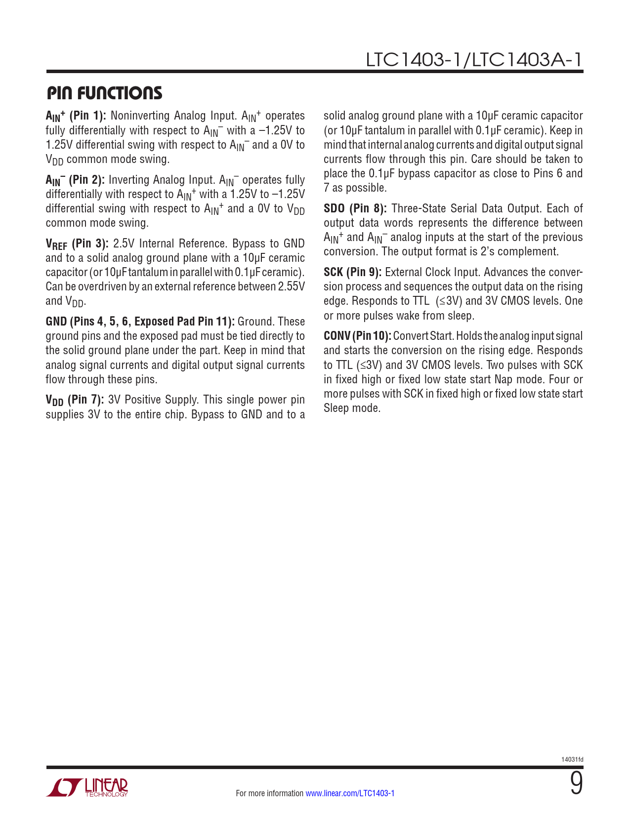 Datasheet LTC1403-1, LTC1403A-1 (Analog Devices) - 9