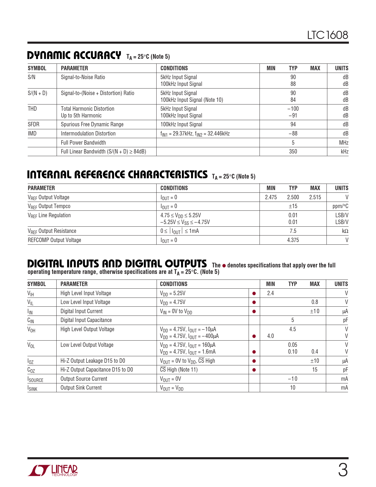 DY A IC ACCURACY TA = 25. C (Note 5). SYMBOL. PARAMETER. CONDITIONS. MIN. TYP. MAX. UNITS. I TER AL REFERE CE CHARACTERISTICS TA = 25