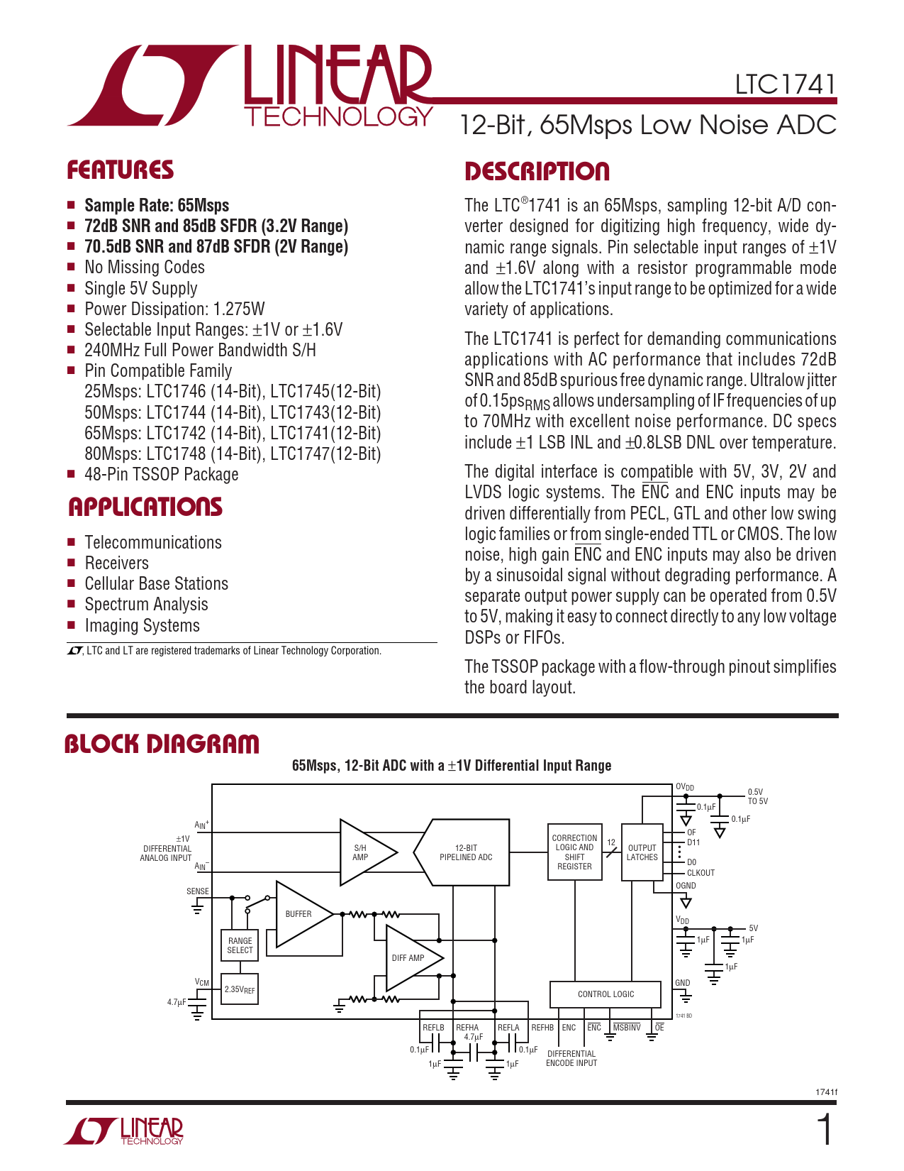 LTC1741 12-Bit, 65Msps Low Noise ADC
