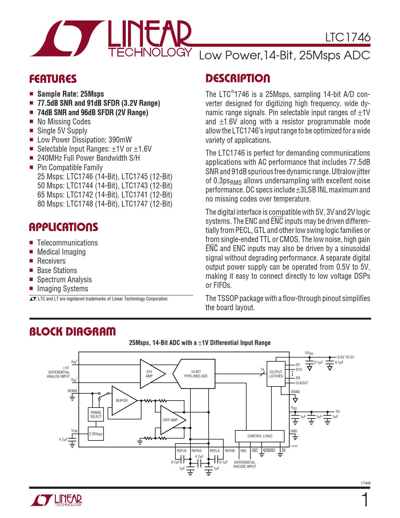 LTC1746 Low Power,14-Bit, 25Msps ADC