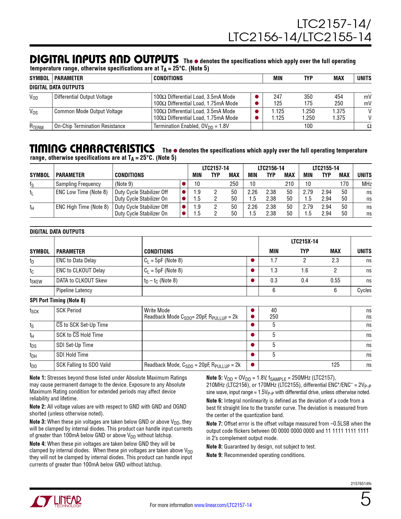 Datasheet LTC2157-14, LTC2156-14, LTC2155-14 (Analog Devices) - 5