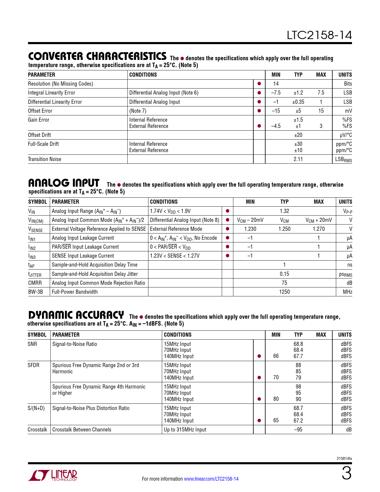 Datasheet LTC2158-14 (Analog Devices) - 3