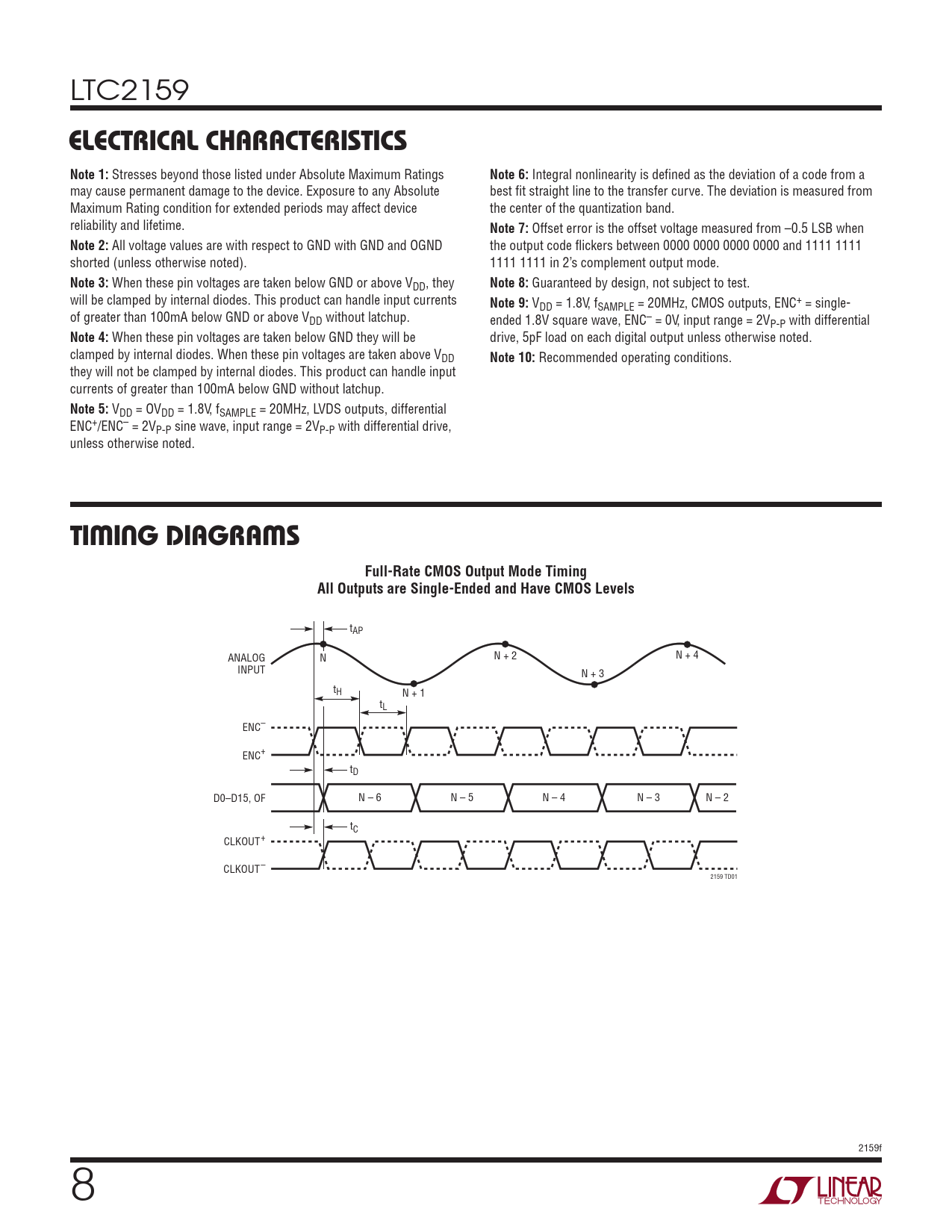 elecTrical characTerisTics. Note 1:. Note 6:. Note 7:. Note 2:. Note 3:. Note 8:. Note 9:. Note 4:. Note 10:. Note 5:. TiMing DiagraMs