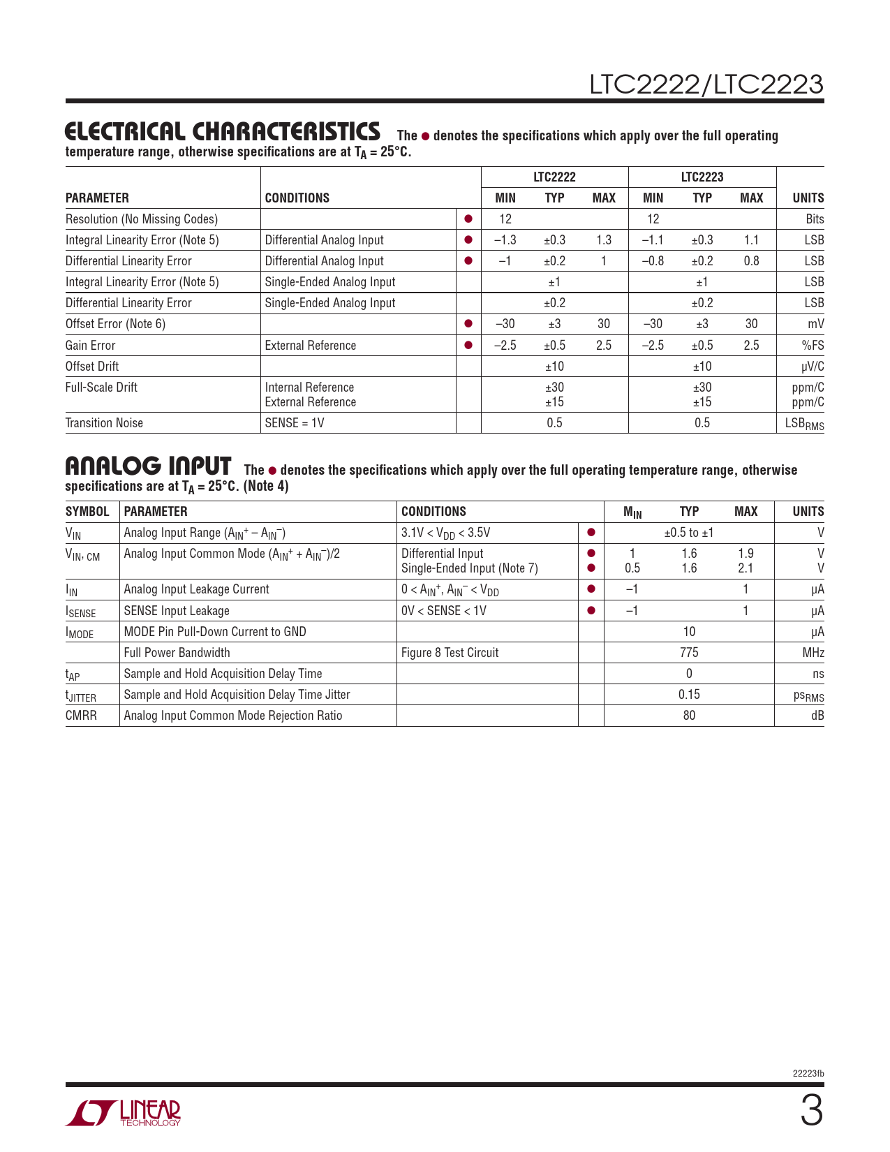 Datasheet LTC2222, LTC2223 (Analog Devices) - 3