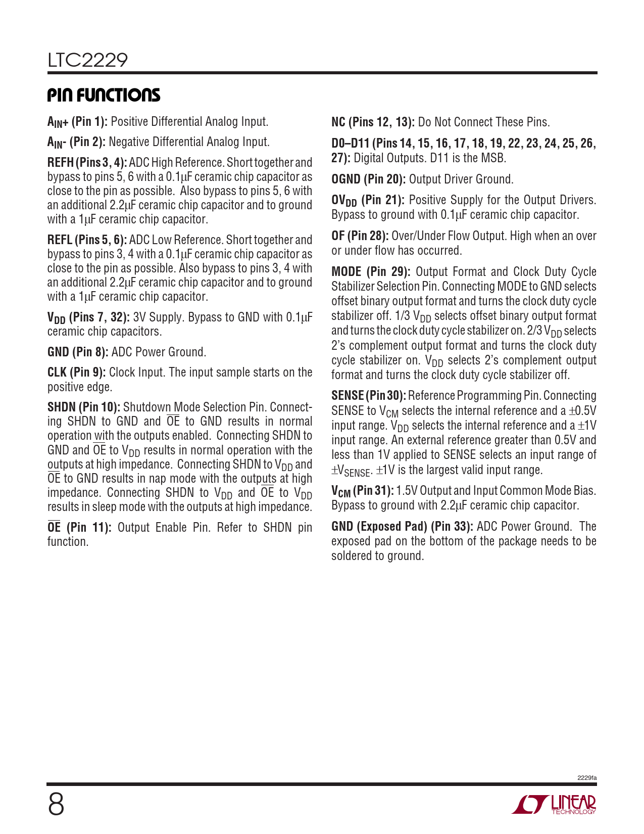 ADC Power Ground. The function. exposed pad on the bottom of the package needs to be soldered to ground. 2229fa 8