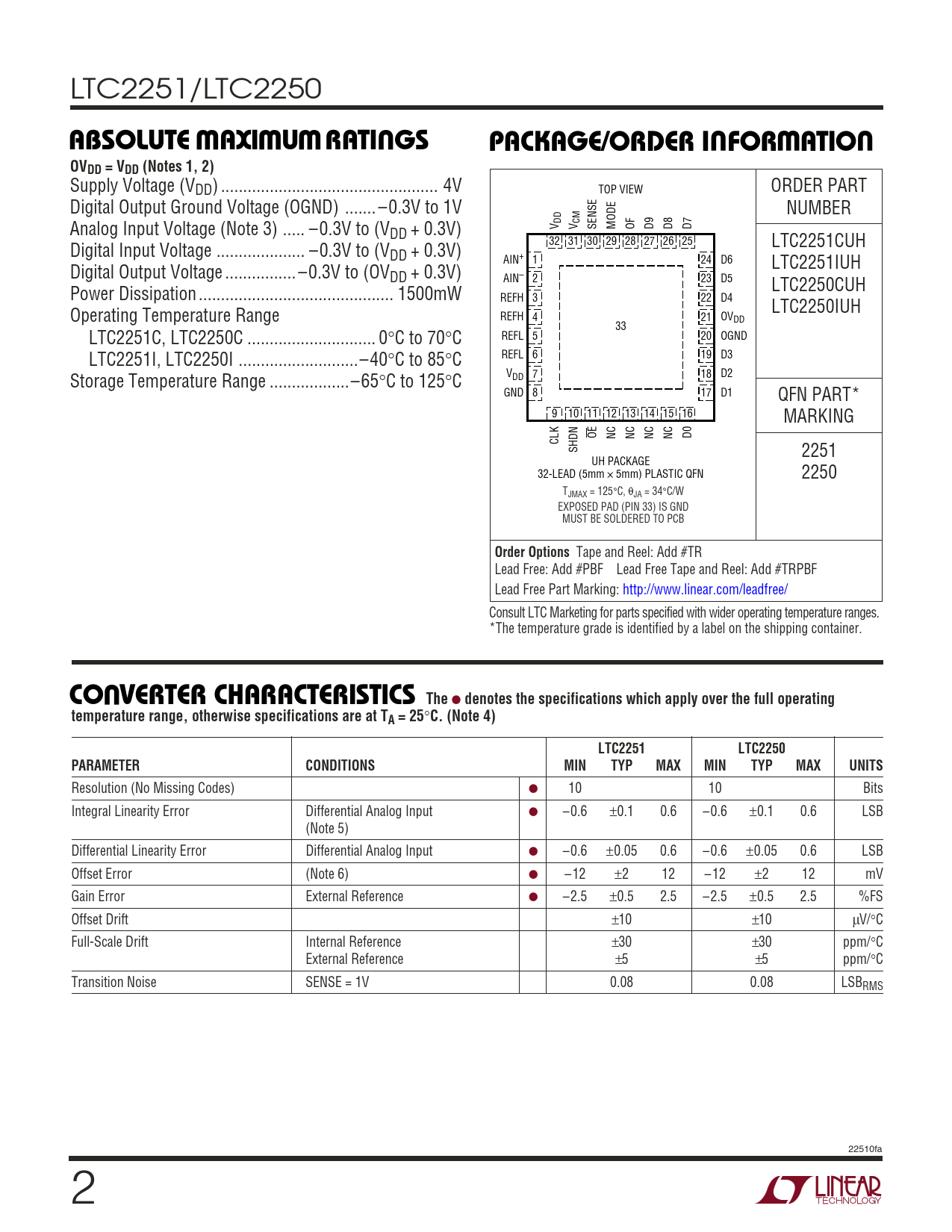 Datasheet LTC2251, LTC2250 (Analog Devices) - 2