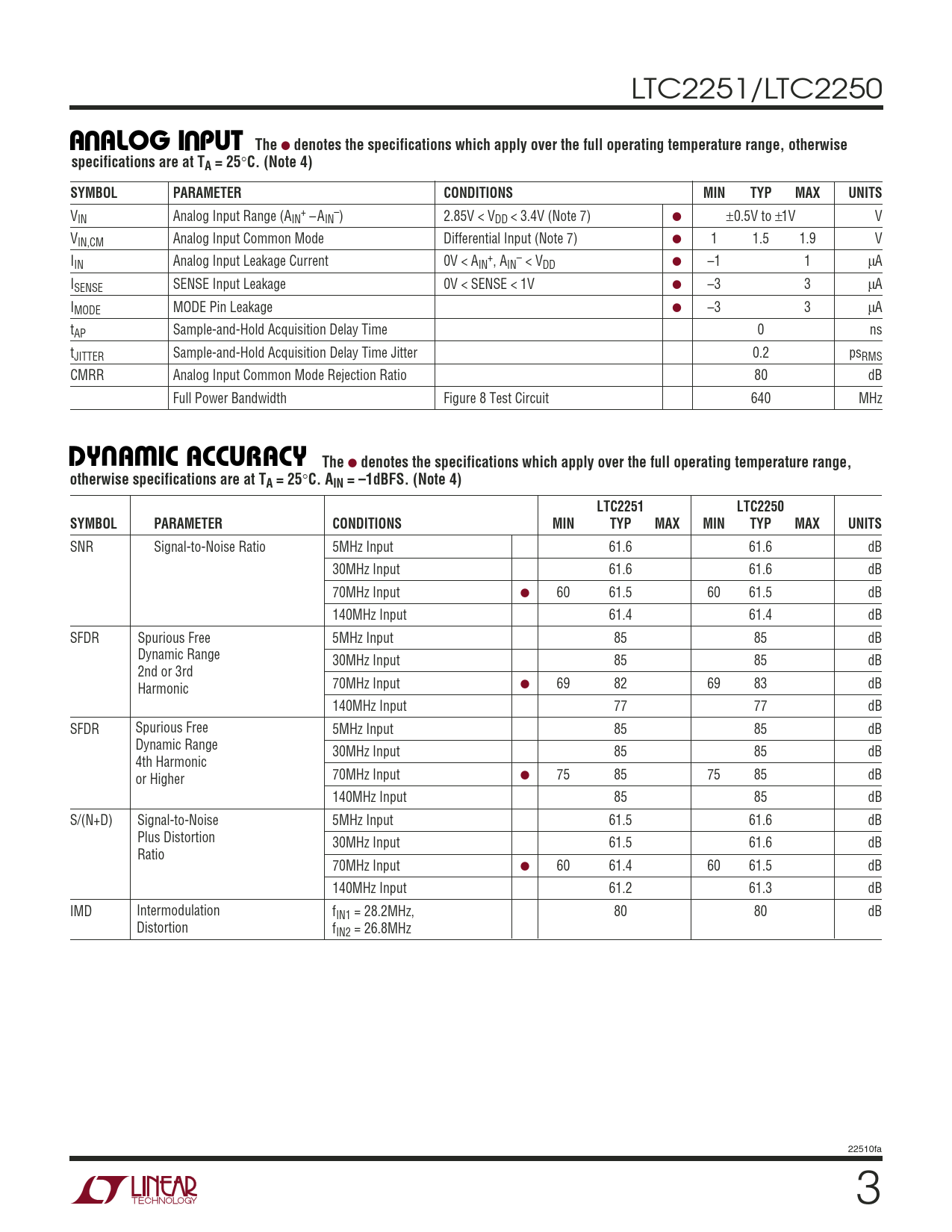 Datasheet LTC2251, LTC2250 (Analog Devices) - 3