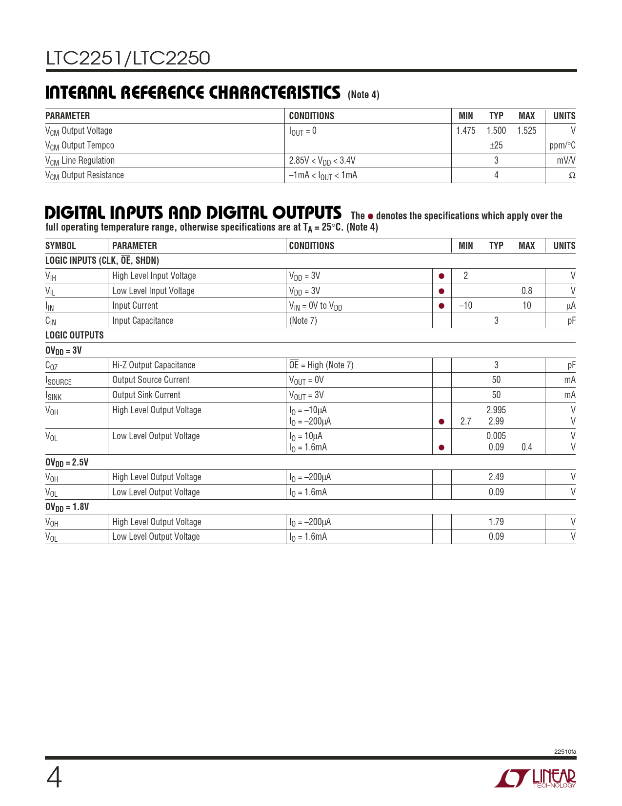 Datasheet LTC2251, LTC2250 (Analog Devices) - 4
