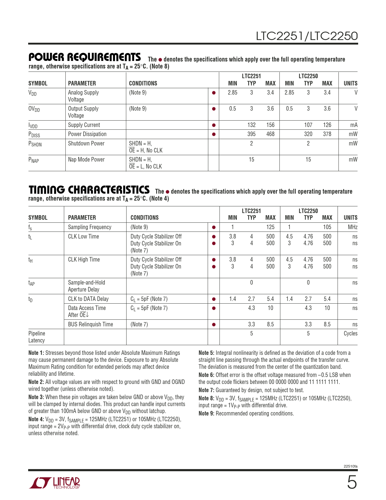 C. (Note 8) LTC2251 LTC2250 SYMBOL PARAMETER CONDITIONS MIN TYP MAX MIN TYP MAX UNITS