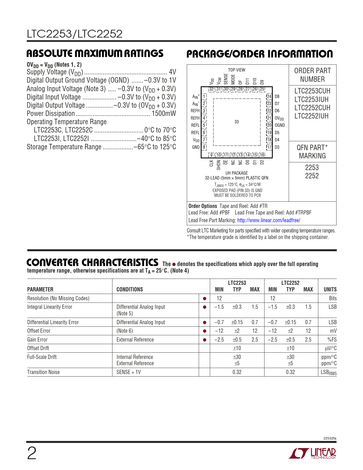 Datasheet LTC2253, LTC2252 (Analog Devices) - 2