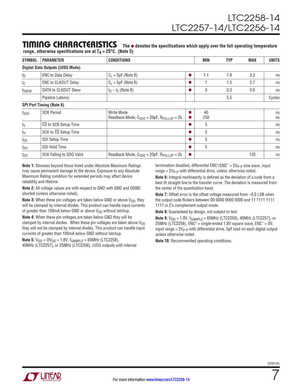 Datasheet LTC2258-14, LTC2257-14, LTC2256-14 (Analog Devices) - 7