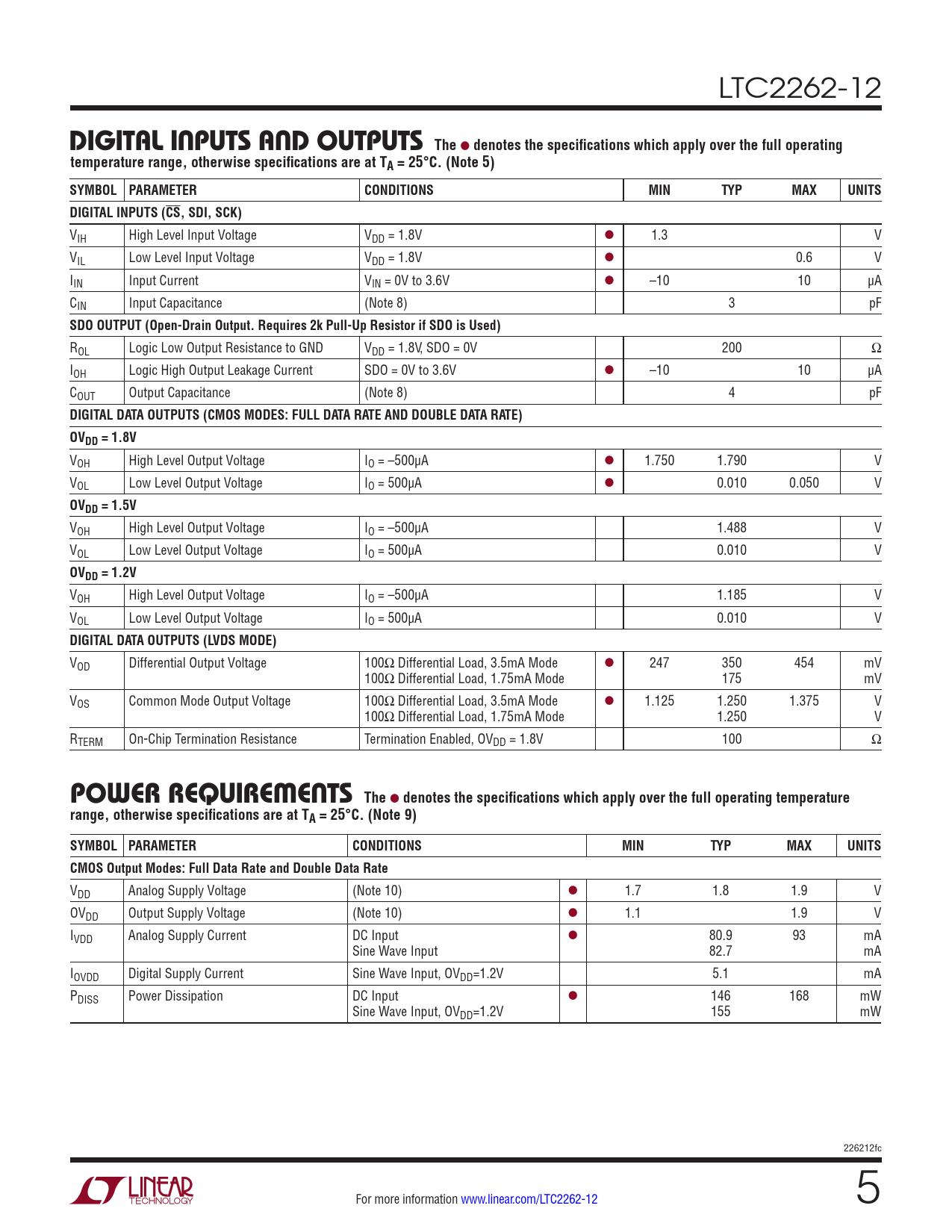 Datasheet LTC2262-12 (Analog Devices) - 5