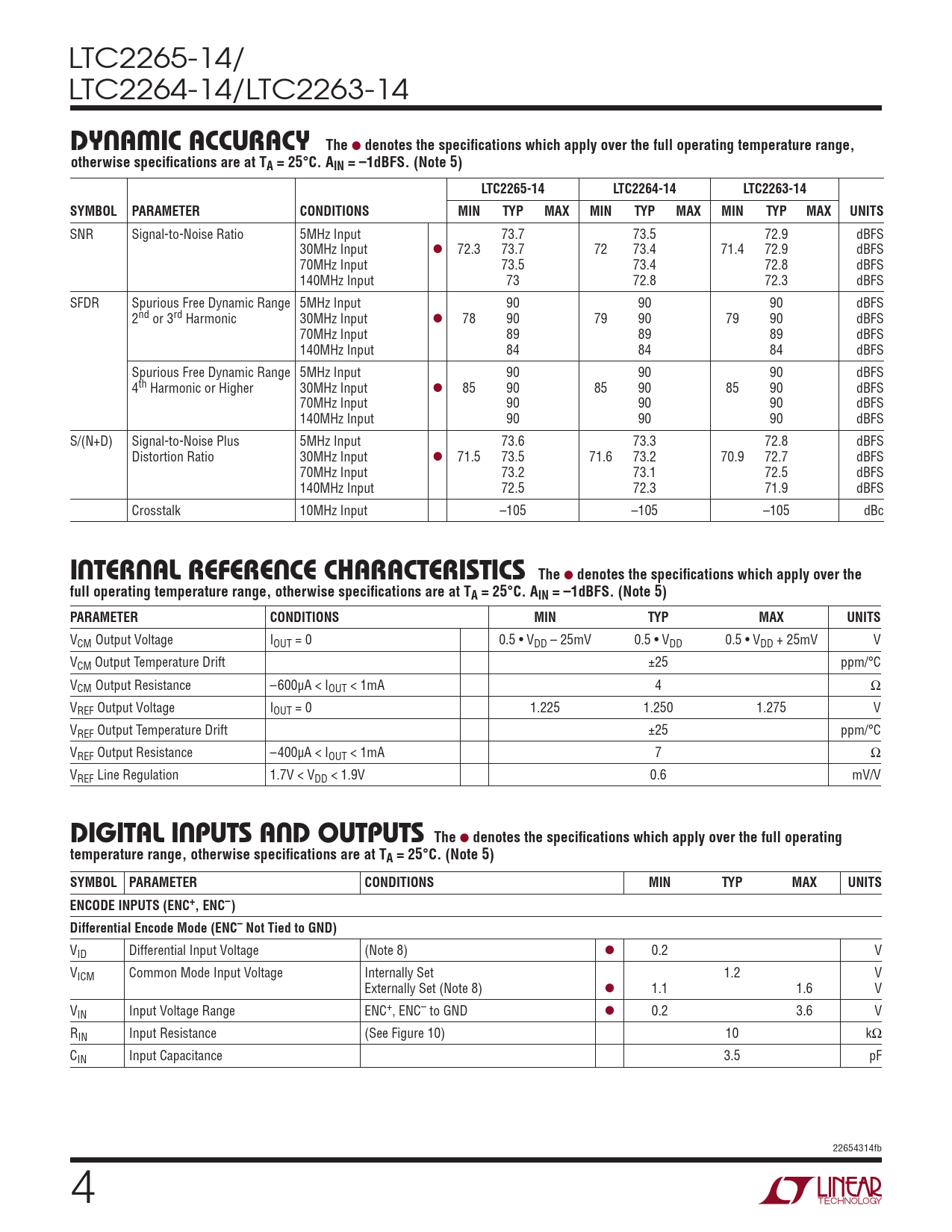 Datasheet LTC2265-14, LTC2264-14, LTC2263-14 (Analog Devices) - 4