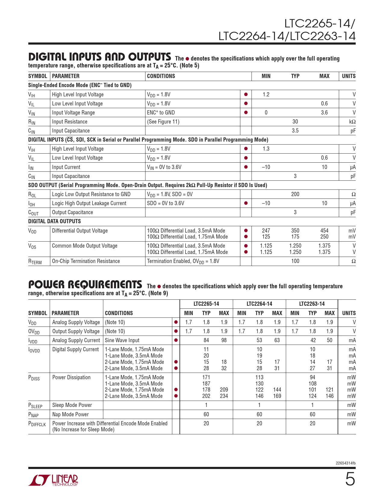 Datasheet LTC2265-14, LTC2264-14, LTC2263-14 (Analog Devices) - 5