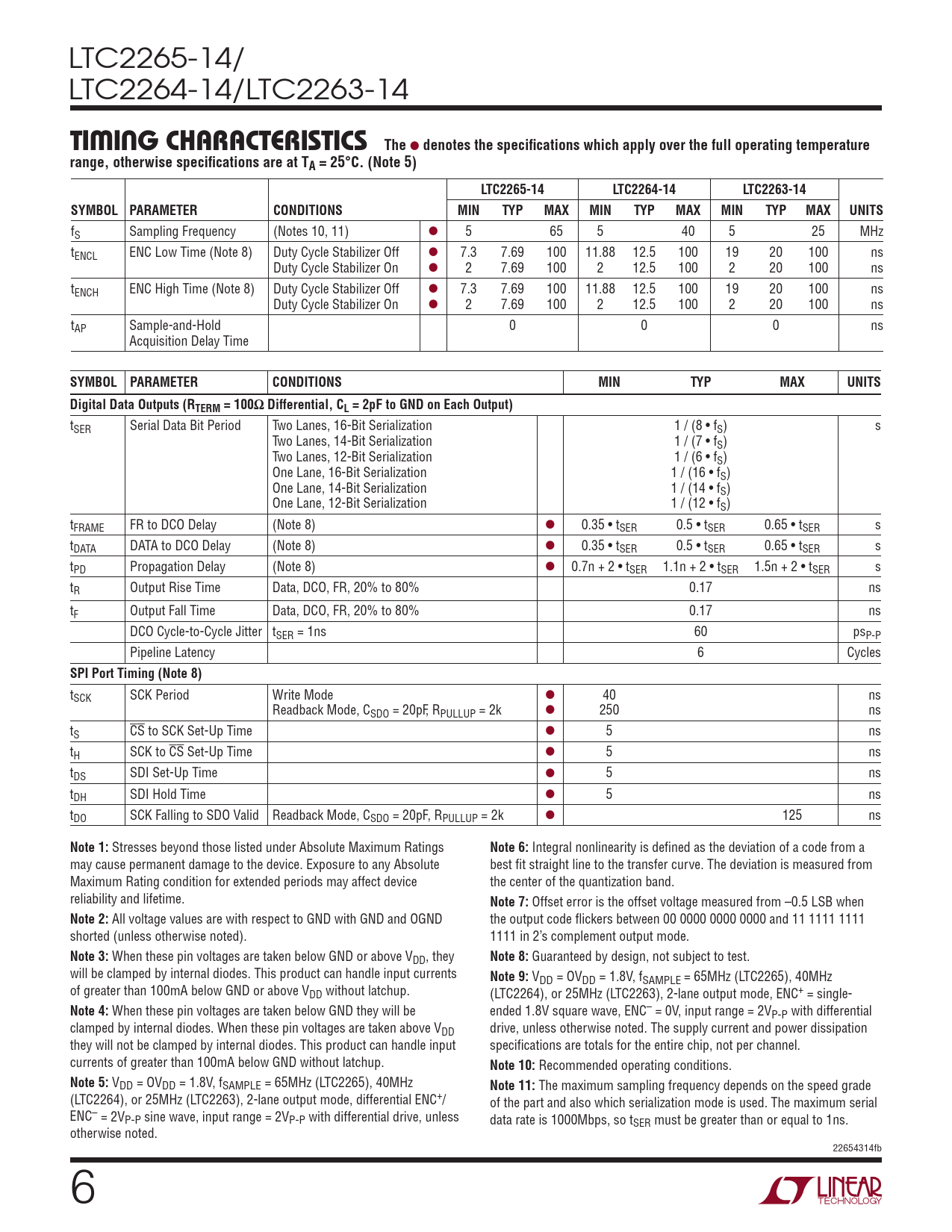 Datasheet LTC2265-14, LTC2264-14, LTC2263-14 (Analog Devices) - 6