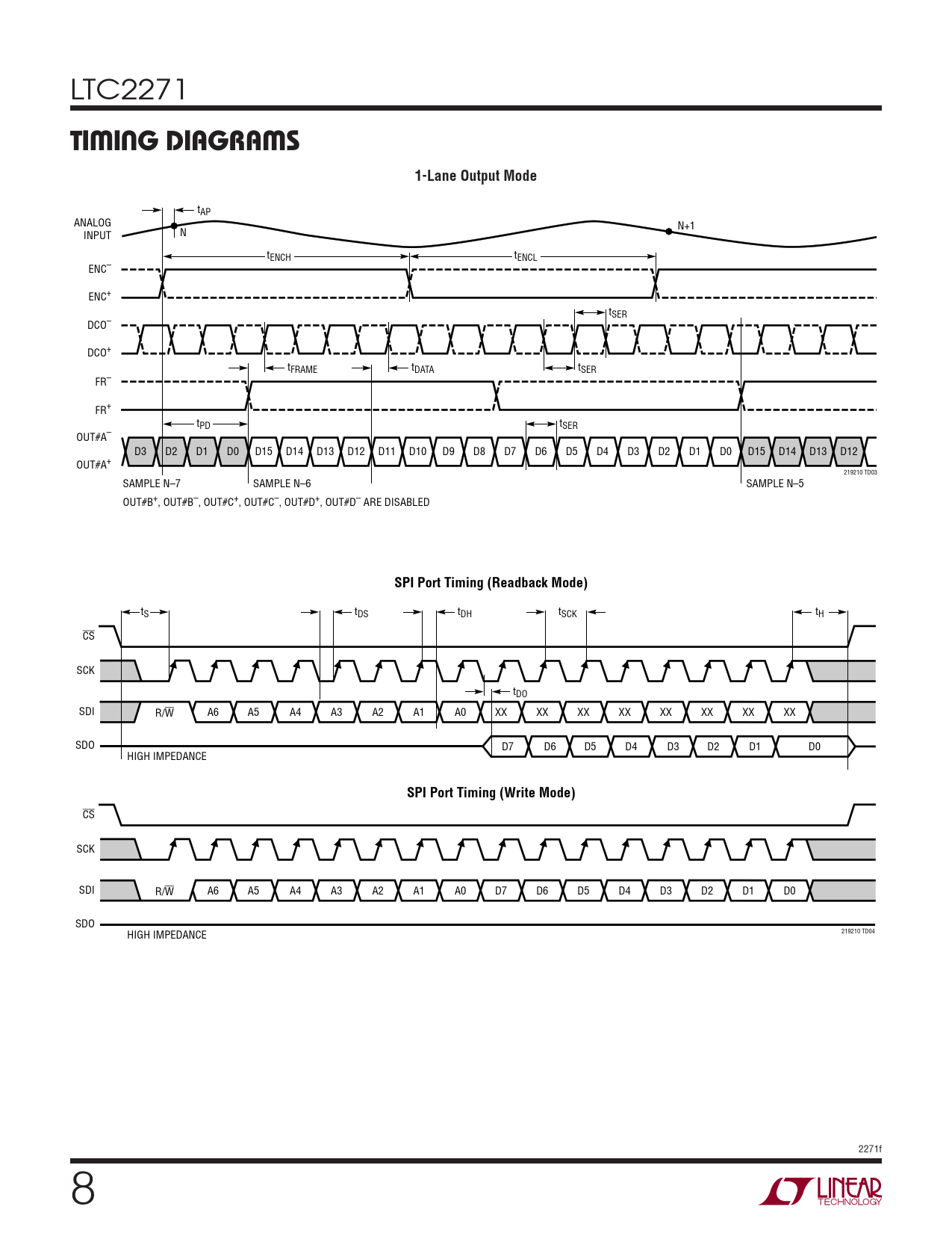 CS SCK SDI R/W A6 A5 A4 A3 A2 A1 A0 D7 D6 D5 D4 D3 D2 D1 D0 SDO 219210 TD04 HIGH IMPEDANCE 2271f 8