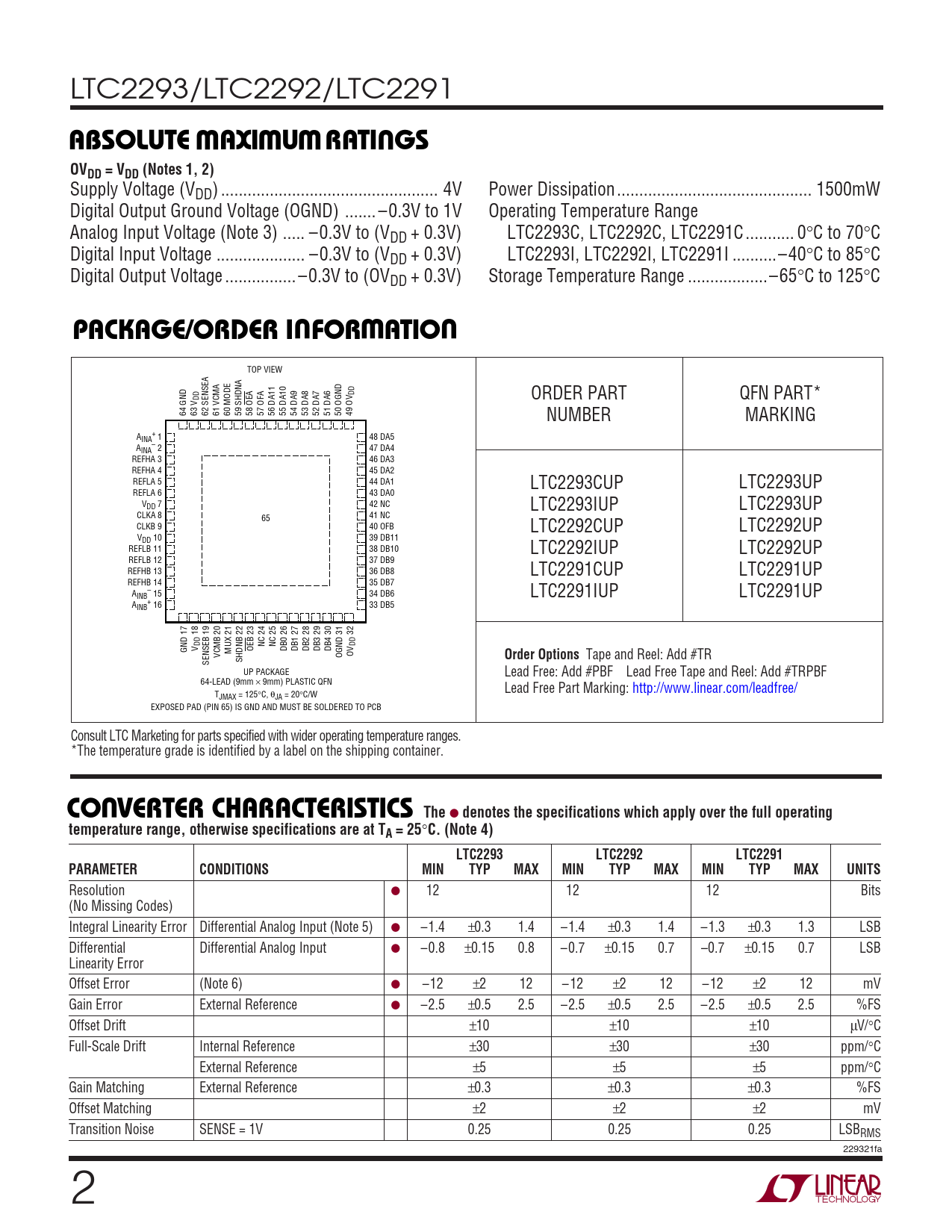 Datasheet LTC2293, LTC2292, LTC2291 (Analog Devices) - 2
