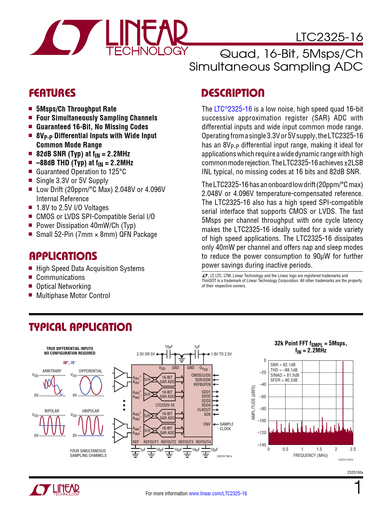 The LTC®2325-16 is a low noise, high speed quad 16-bit n
