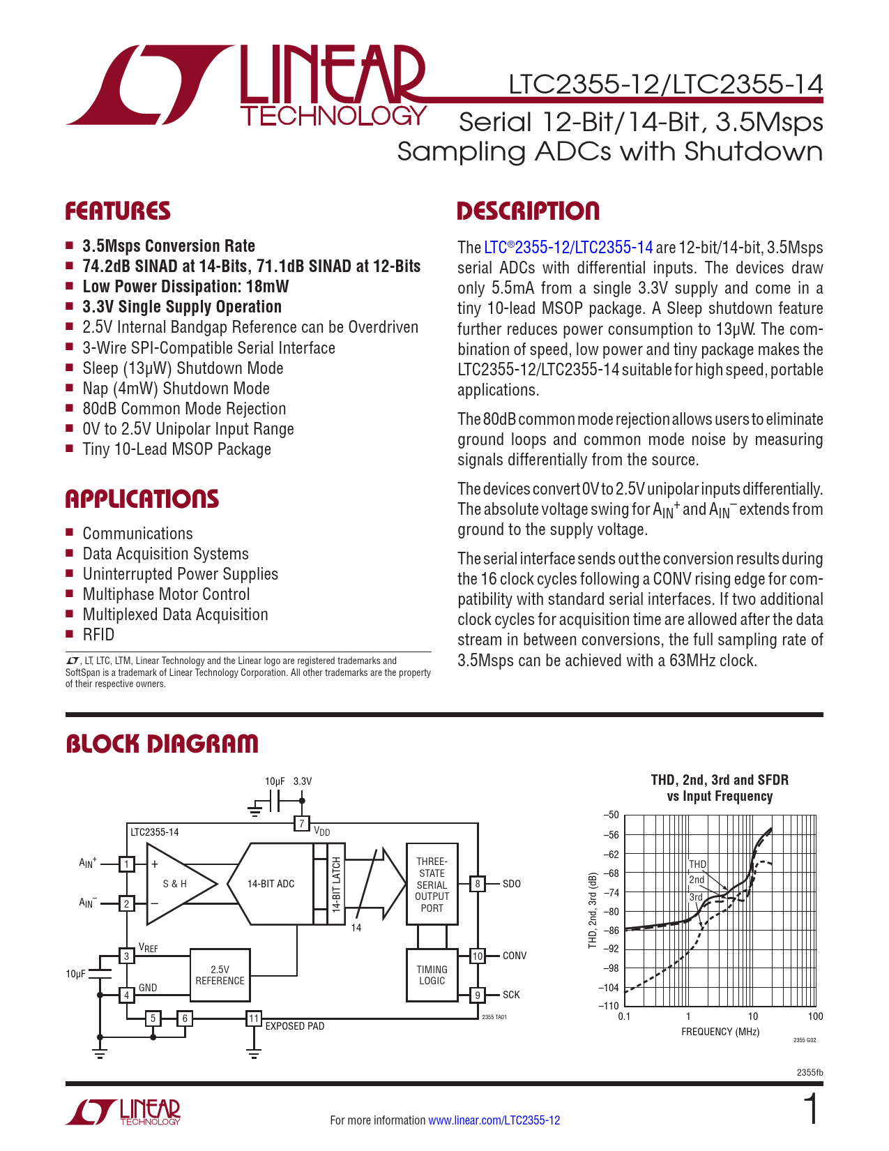 Datasheet LTC2355-12, LTC2355-14 (Analog Devices)
