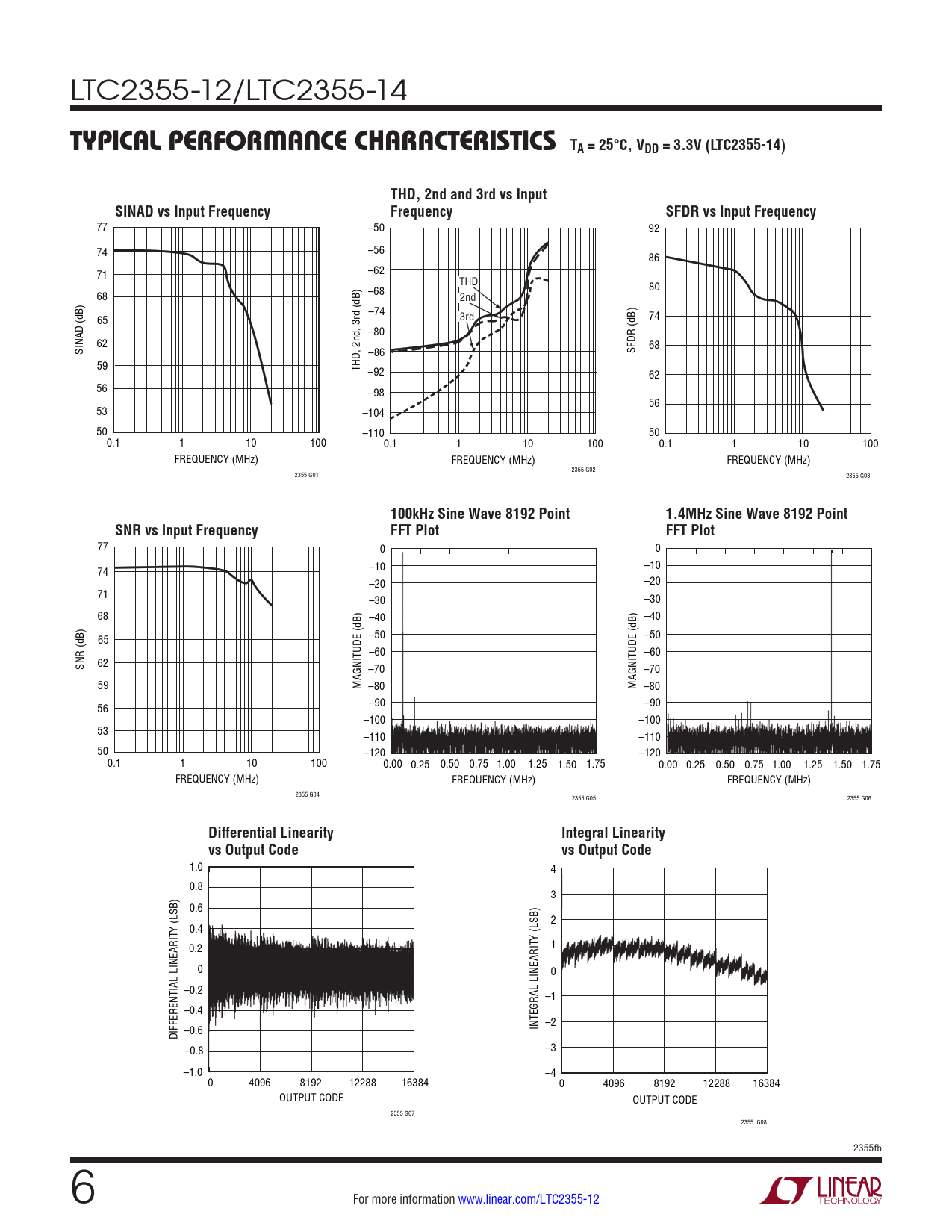 | Pages / Page | 18 / 6 — TYPICAL PERFORMANCE CHARACTERISTICS TA = 25°C, VDD = 3.3V (LTC2355-14). … |