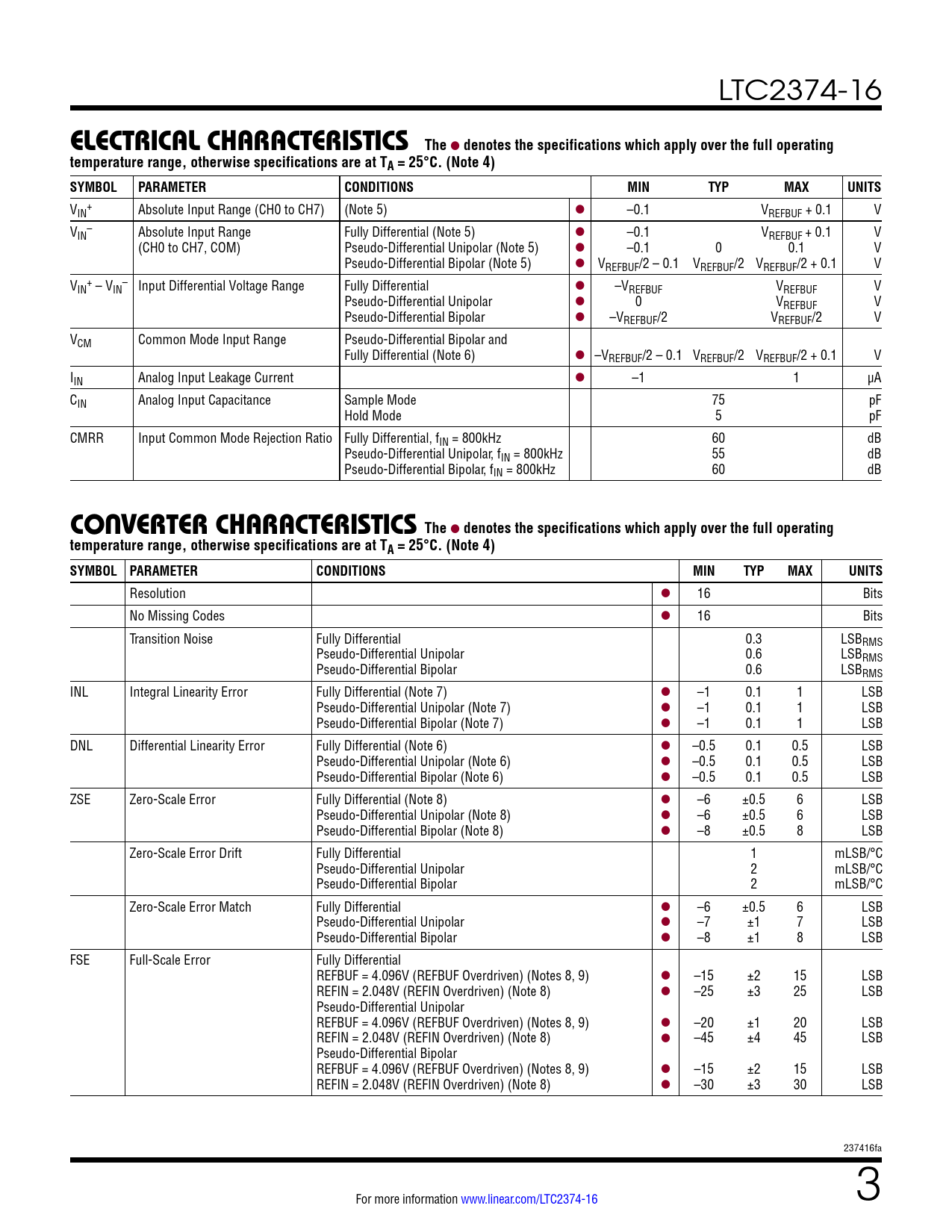 Datasheet LTC2374-16 (Analog Devices) - 3