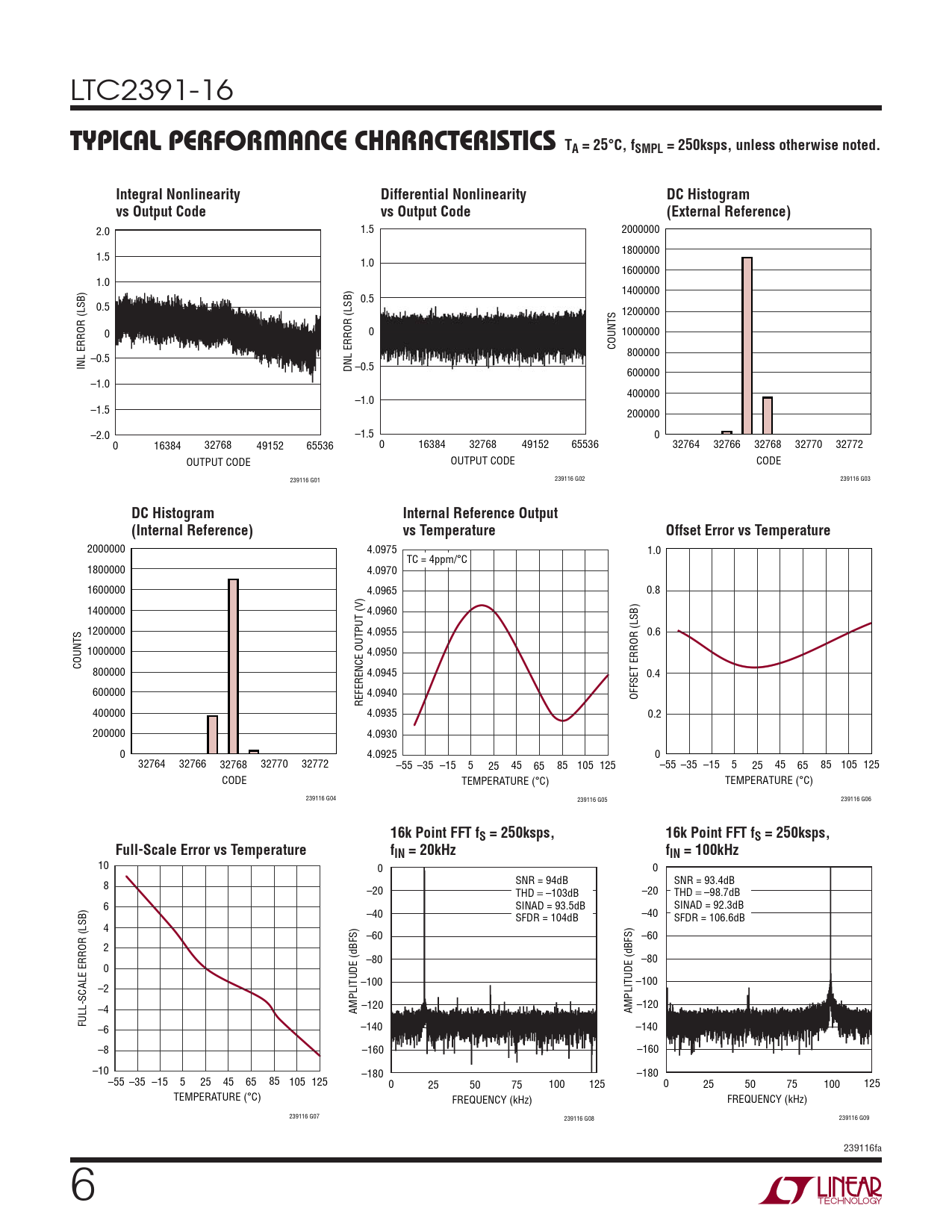 | Pages / Page | 24 / 6 — TYPICAL PERFORMANCE CHARACTERISTICS TA = 25°C, fSMPL = 250ksps, unless … |