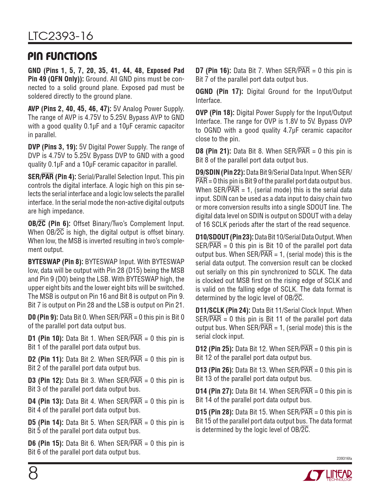 Pages / Page24 / 8 — PIN FUNCTIONS. GND (Pins 1, 5, 7, 20, 35, 41, 44, 48, Exposed Pad. D7 …