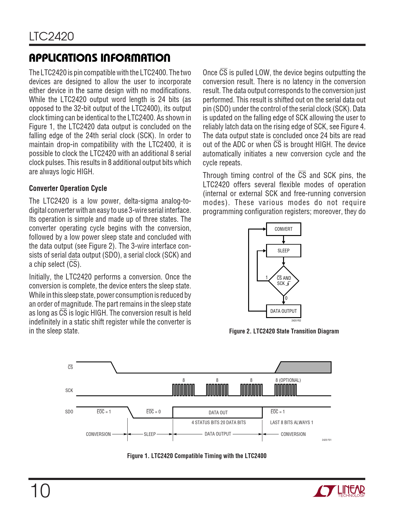 CS 8 8 8 8 (OPTIONAL) SCK SDO EOC = 1 EOC = 0 DATA OUT EOC = 1 4 STATUS BITS 20 DATA BITS LAST 8 BITS ALWAYS 1 CONVERSION SLEEP DATA OUTPUT CONVERSION 2420 F01