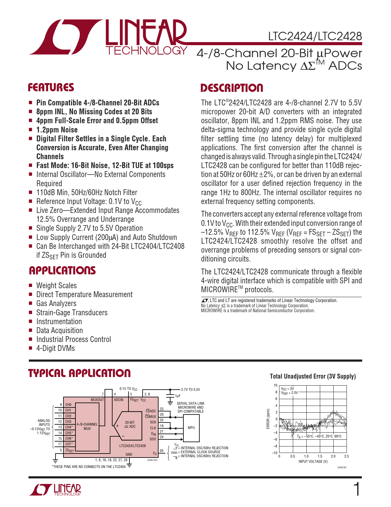 The LTC®2424/LTC2428 are 4-/8-channel 2.7V to 5.5V ■