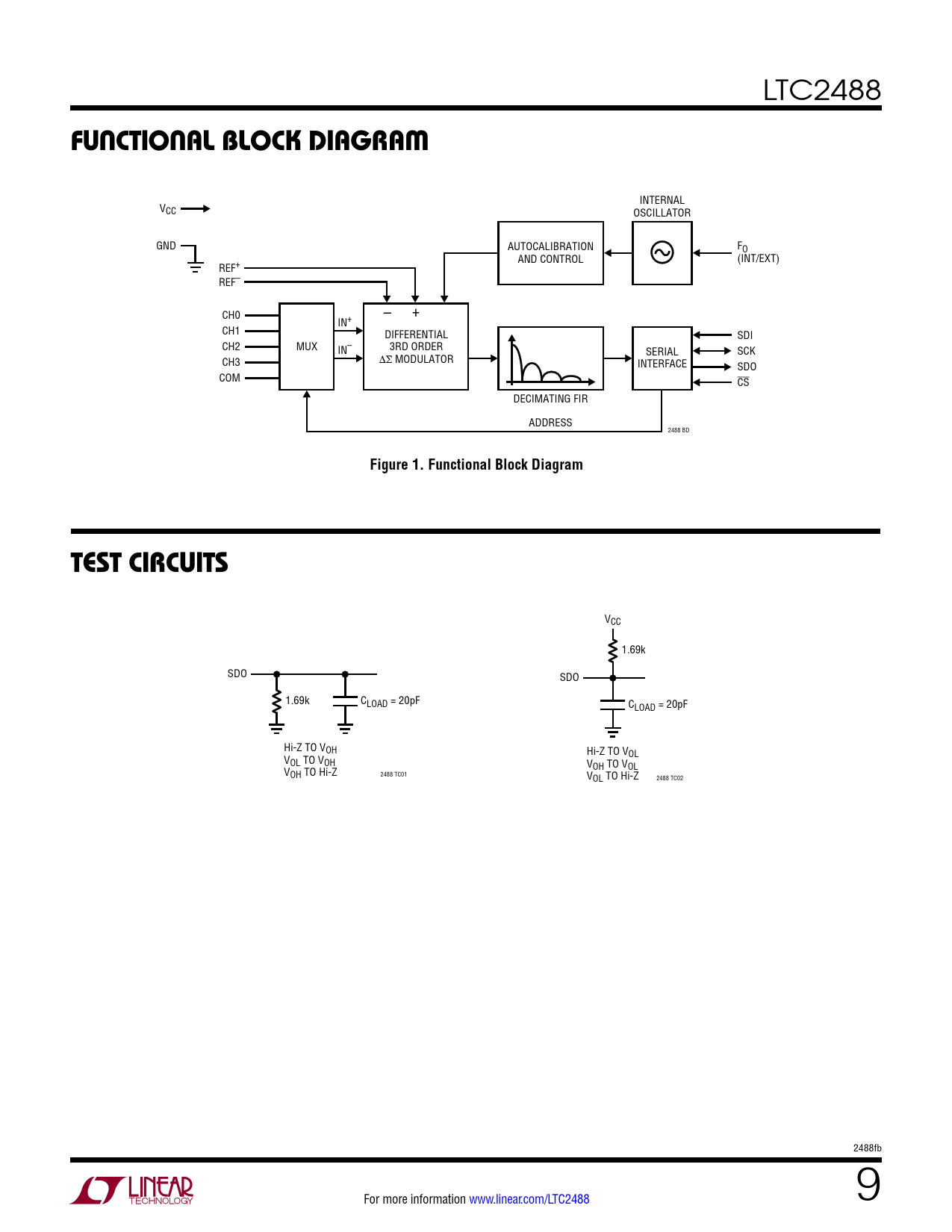 VCC 1.69k SDO SDO 1.69k CLOAD = 20pF CLOAD = 20pF Hi-Z TO VOH Hi-Z TO V V OL OL TO VOH V V OH TO VOL 2488 TC01 OH TO Hi-Z V 2488 TC02 OL TO Hi-Z 2488fb For more information www.linear.com/LTC2488 9