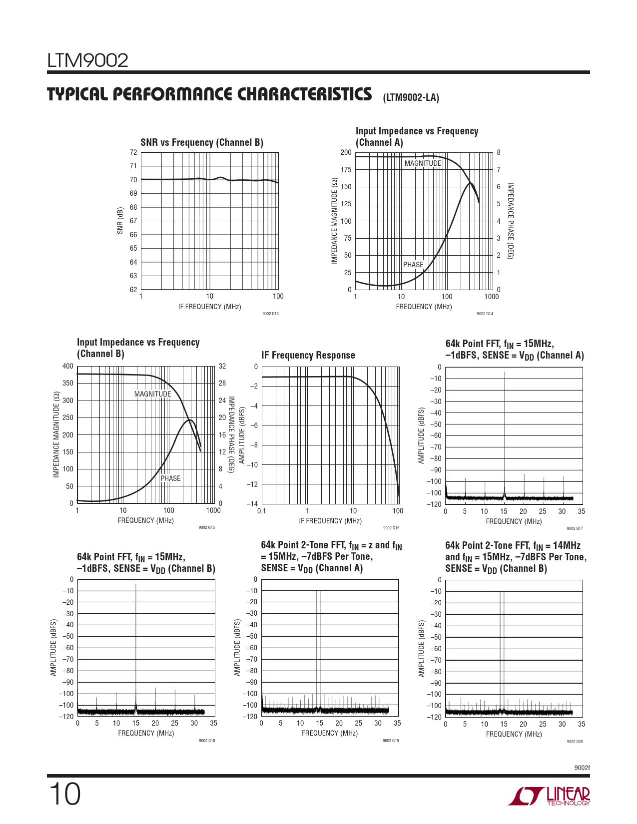 TYPICAL PERFORMANCE CHARACTERISTICS (LTM9002-LA). Input Impedance vs Frequency. SNR vs Frequency (Channel B). (Channel A)