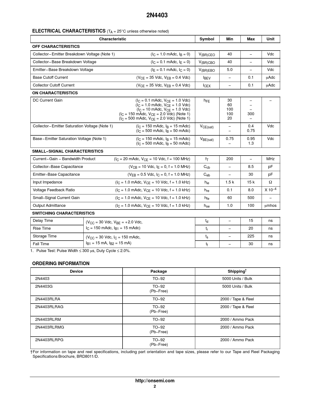 Datasheet 2N4403 (ON Semiconductor) - 2